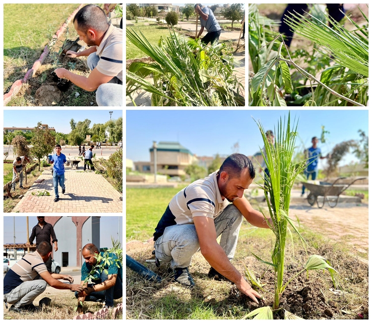 The president of the University, Prof. Dr. Omran Jamal Hassan, stressed on continuing the afforestation campaign recommended by the prime minister to increase green spaces in the corridors of the University and its colleges, appreciating the efforts of the workers on this campaign, stressing his material and moral support to cover all vacant spaces.