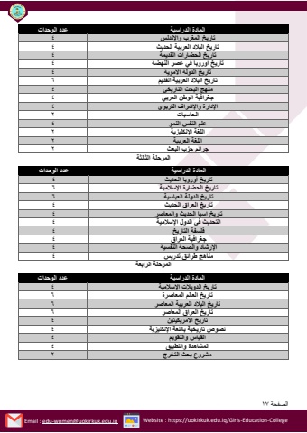 %u0627%u0644%u0635%u0641%u062d%u0629 17Email : edu-women@uokirkuk.edu.iq Website : https://uokirkuk.edu.iq/Girls-Education-College%u0627%u0644%u0645%u0627%u062f%u0629 %u0627%u0644%u062f%u0631%u0627%u0633%u064a%u0629 %u0639%u062f%u062f %u0627%u0644%u0648%u062d%u062f%u0627%u062a%u062a%u0627%u0631%u064a%u062e %u0627%u0644%u0645%u063a%u0631%u0628 %u0648%u0627%u0627%u0644%u0646%u062f%u0644%u0633 4%u062a%u0627%u0631%u064a%u062e %u0627%u0644%u0628%u0627%u0644%u062f %u0627%u0644%u0639%u0631%u0628%u064a%u0629 %u0627%u0644%u062d%u062f%u064a%u062b 4%u062a%u0627%u0631%u064a%u062e %u0627%u0644%u062d%u0636%u0627%u0631%u0627%u062a %u0627%u0644%u0642%u062f%u064a%u0645%u0629 4%u062a%u0627%u0631%u064a%u062e %u0623%u0648%u0631%u0648%u0628%u0627 %u0641%u064a %u0639%u0635%u0631 %u0627%u0644%u0646%u0647%u0636%u0629 4%u062a%u0627%u0631%u064a%u062e %u0627%u0644%u062f%u0648%u0644%u0629 %u0627%u0627%u0644%u0645%u0648%u064a%u0629 4%u062a%u0627%u0631%u064a%u062e %u0627%u0644%u0628%u0627%u0644%u062f %u0627%u0644%u0639%u0631%u0628%u064a%u0629 %u0627%u0644%u0642%u062f%u064a%u0645 6%u0645%u0646%u0647%u062c %u0627%u0644%u0628%u062d%u062b %u0627%u0644%u062a%u0627%u0631%u064a%u062e%u064a 4%u062c%u063a%u0631%u0627%u0641%u064a%u0629 %u0627%u0644%u0648%u0637%u0646 %u0627%u0644%u0639%u0631%u0628%u064a 4%u0627%u0625%u0644%u062f%u0627%u0631%u0629 %u0648%u0627%u0625%u0644%u0634%u0631%u0627%u0641 %u0627%u0644%u062a%u0631%u0628%u0648%u064a 4%u0627%u0644%u062d%u0627%u0633%u0628%u0627%u062a 2%u0639%u0644%u0645 %u0627%u0644%u0646%u0641%u0633 %u0627%u0644%u0646%u0645%u0648 4%u0627%u0644%u0644%u063a%u0629 %u0627%u0625%u0644%u0646%u0643%u0644%u064a%u0632%u064a%u0629 2%u0627%u0644%u0644%u063a%u0629 %u0627%u0644%u0639%u0631%u0628%u064a%u0629 2%u062c%u0631%u0627%u0626%u0645 %u062d%u0632%u0628 %u0627%u0644%u0628%u0639%u062b 2%u0627%u0644%u0645%u0631%u062d%u0644%u0629 %u0627%u0644%u062b%u0627%u0644%u062b%u0629 %u0627%u0644%u0645%u0627%u062f%u0629 %u0627%u0644%u062f%u0631%u0627%u0633%u064a%u0629 %u0639%u062f%u062f %u0627%u0644%u0648%u062d%u062f%u0627%u062a%u062a%u0627%u0631%u064a%u062e %u0623%u0648%u0631%u0648%u0628%u0627 %u0627%u0644%u062d%u062f%u064a%u062b 4%u062a%u0627%u0631%u064a%u062e %u0627%u0644%u062d%u0636%u0627%u0631%u0629 %u0627%u0625%u0644%u0633%u0627%u0644%u0645%u064a%u0629 6%u062a%u0627%u0631%u064a%u062e %u0627%u0644%u062f%u0648%u0644%u0629 %u0627%u0644%u0639%u0628%u0627%u0633%u064a%u0629 6%u062a%u0627%u0631%u064a%u062e %u0627%u0644%u0639%u0631%u0627%u0642 %u0627%u0644%u062d%u062f%u064a%u062b 4%u062a%u0627%u0631%u064a%u062e %u0627%u0633%u064a%u0627 %u0627%u0644%u062d%u062f%u064a%u062b %u0648%u0627%u0644%u0645%u0639%u0627%u0635%u0631 4%u0627%u0644%u062a%u062d%u062f%u064a%u062b %u0641%u064a %u0627%u0644%u062f%u0648%u0644 %u0627%u0625%u0644%u0633%u0627%u0644%u0645%u064a%u0629 4%u0641%u0644%u0633%u0641%u0629 %u0627%u0644%u062a%u0627%u0631%u064a%u062e 4%u062c%u063a%u0631%u0627%u0641%u064a%u0629 %u0627%u0644%u0639%u0631%u0627%u0642 4%u0627%u0625%u0644%u0631%u0634%u0627%u062f %u0648%u0627%u0644%u0635%u062d%u0629 %u0627%u0644%u0646%u0641%u0633%u064a%u0629 4%u0645%u0646%u0627%u0647%u062c %u0637%u0631%u0627%u0626%u0642 %u062a%u062f%u0631%u064a%u0633 4%u0627%u0644%u0645%u0631%u062d%u0644%u0629 %u0627%u0644%u0631%u0627%u0628%u0639%u0629 %u0627%u0644%u0645%u0627%u062f%u0629 %u0627%u0644%u062f%u0631%u0627%u0633%u064a%u0629 %u0639%u062f%u062f %u0627%u0644%u0648%u062d%u062f%u0627%u062a%u062a%u0627%u0631%u064a%u062e %u0627%u0644%u062f%u0648%u064a%u0627%u0644%u062a %u0627%u0625%u0644%u0633%u0627%u0644%u0645%u064a%u0629 4%u062a%u0627%u0631%u064a%u062e %u0627%u0644%u0639%u0627%u0644%u0645 %u0627%u0644%u0645%u0639%u0627%u0635%u0631%u0629 6%u062a%u0627%u0631%u064a%u062e %u0627%u0644%u0628%u0627%u0644%u062f %u0627%u0644%u0639%u0631%u0628%u064a%u0629 %u0627%u0644%u0645%u0639%u0627%u0635%u0631 6%u062a%u0627%u0631%u064a%u062e %u0627%u0644%u0639%u0631%u0627%u0642 %u0627%u0644%u0645%u0639%u0627%u0635%u0631 6%u062a%u0627%u0631%u064a%u062e %u0627%u0627%u0644%u0645%u0631%u064a%u0643%u064a%u062a%u064a%u0646 4%u0646%u0635%u0648%u0635 %u062a%u0627%u0631%u064a%u062e%u064a%u0629 %u0628%u0627%u0644%u0644%u063a%u0629 %u0627%u0625%u0644%u0646%u0643%u0644%u064a%u0632%u064a%u0629 4%u0627%u0644%u0642%u064a%u0627%u0633 %u0648%u0627%u0644%u062a%u0642%u0648%u064a%u0645 4%u0627%u0644%u0645%u0634%u0627%u0647%u062f%u0629 %u0648%u0627%u0644%u062a%u0637%u0628%u064a%u0642 4%u0645%u0634%u0631%u0648%u0639 %u0628%u062d%u062b %u0627%u0644%u062a%u062e%u0631%u062c 2