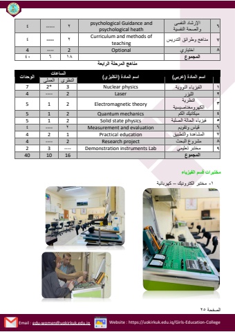 %u0627%u0644%u0635%u0641%u062d%u0629 25Email : edu-women@uokirkuk.edu.iq Website : https://uokirkuk.edu.iq/Girls-Education-College6 %u0625%u0644 %u0634%u0645%u062f%u0629 %u0628 %u064a%u0633 %u0629%u0633 %u0628%u0635 %u0639%u0629 %u0628 %u064a%u0633%u0642%u0639%u0629psychological Guidance and psychological heath4 ----- 27 %u062e %u0645 %u062c%u0629%u0633%u0627 %u0644%u0627%u0629 %u0628%u0648%u062f %u0642 %u0629Curriculum and methods of teaching4 %u0629 ----24 ---- 2 Optional %u064a%u0629 %u062e%u0648%u0642%u0645 840 6 18 %u0627%u0644%u0645%u062c%u0645%u0648%u0639%u0645%u0646%u0627%u0647%u062c %u0627%u0644%u0645%u0631%u062d%u0644%u0629 %u0627%u0644%u0631%u0627%u0628%u0639%u0629 %u0628 %u0648 %u064a%u0629 %u0628%u0639%u062e%u0627 %u0627%u0644%u0648%u062d%u062f%u0627%u062a %u0627%u0644%u0633%u0627%u0639%u0627%u062a %u0627%u0633%u0645 %u0627%u0644%u0645%u0627%u062f%u0629 )%u0639%u0631%u0628%u064a( %u0627%u0633%u0645 %u0627%u0644%u0645%u0627%u062f%u0629 )%u0627%u0646%u0643%u0644%u064a%u0632%u064a( 7 2* 3 Nuclear physics %u0633%u0633%u0642%u0639%u0629 %u0628 %u0629 %u0628%u064a%u0642%u0621%u0642%u0645 14 ---- 2 Laser %u0628%u0627%u0642%u0621 23 %u0628 %u0648 %u0642%u0639%u0629%u0645%u0635%u0642%u0633%u0642%u0639%u0629 %u0633%u062e%u0627 %u0628%u0648%u0647 5 1 2 Electromagnetic theory5 1 2 Quantum mechanics %u0629 %u0628%u0648 %u0642%u0643%u0629 %u062e%u0642%u0648%u0645 45 1 2 Solid state physics %u0628%u0635%u0627%u0642%u0639%u0629 %u0645%u0628%u0639%u0629 %u0628 %u0629 %u0641%u0642%u0621%u0642%u0645 54 ---- 2 Measurement and evaluation %u0629 %u0629%u0633%u0648%u0642%u0633%u0642 %u064a%u0642%u0645 64 2 1 Practical education %u0628%u0648%u0627%u0642%u0642%u0627%u0629 %u0629%u0633 %u062f %u0628%u062e%u0634%u0645 74 ---- 2 Research project %u0639%u0629 %u0628%u0642 %u0633%u062a%u0629 %u062e%u0634 82 3 ---- Demonstration instruments Lab %u0629 %u0629%u0648%u0639%u0627%u0642%u062e %u062e%u062e%u0648%u0642 940 10 16 %u0627%u0644%u0645%u062c%u0645%u0648%u0639%u0645%u062e%u062a%u0628%u0631%u0627%u062a %u0642%u0633%u0645 %u0627%u0644%u0641%u064a%u0632%u064a%u0627%u06211 -%u062e%u062e%u0648%u0642 %u0629 %u0628%u0648%u0648 %u0633 %u0642%u0643 %u2013%u0629 %u0648%u0647 %u0642%u0645%u0644%u0642%u0639