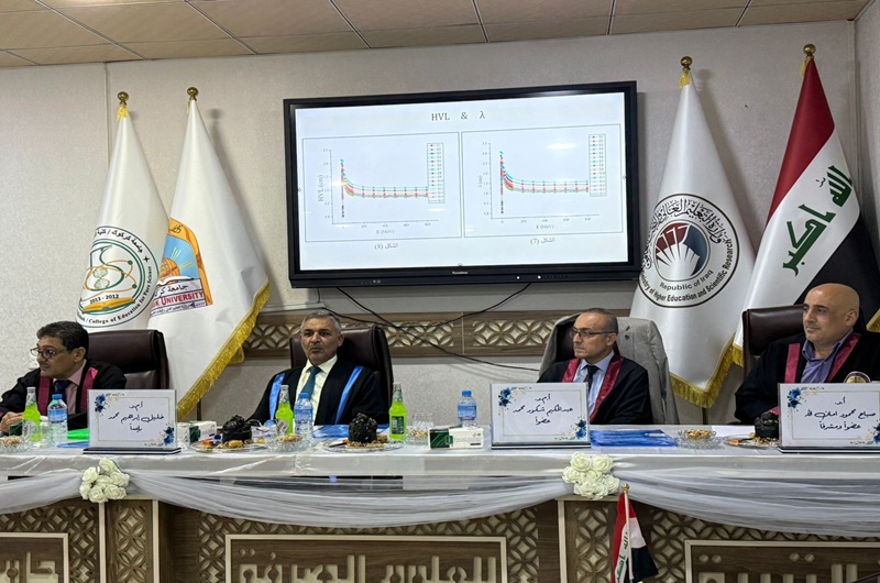 ناقشت رسالة ماجستير في كلية التربية للعلوم الصرفة، تحليل خواص الامتصاصية لبعض الاشعاعات النووية لمواد متنوعة لأغراض التدريع. وهدفت الرسالة التي قدمها الطالب خالد احمد ابراهيم، إلى دراسة خصائص الحماية لمواد متنوعة وتحديد المواد التي يمكن استخدامها لإنشاء خيارات حماية جديدة، تعمل كبدائل للمواد النادرة والمكلفة.
