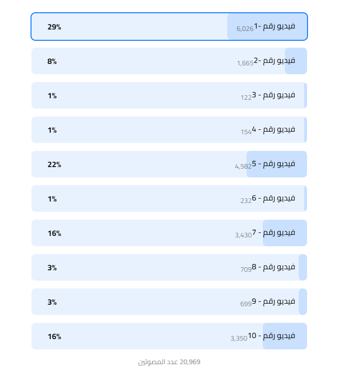 علماً أن هذه الفيديوهات قد حصلت على اعلى الدرجات من بين الفيديوهات المشاركة في المسابقة والتي كانت من (70%). وستكون درجة التصويت الالكتروني من (30%) تضاف الى الدرجة (70%) لغرض تحديد الفائزين الثلاثة الاوائل.