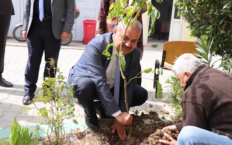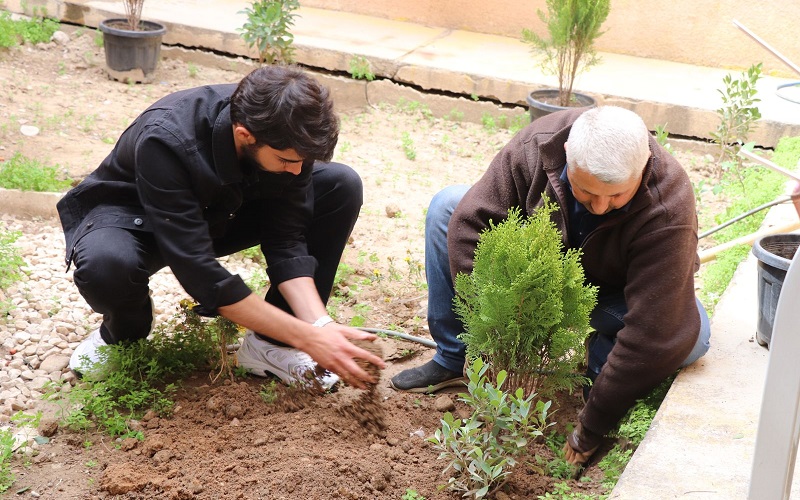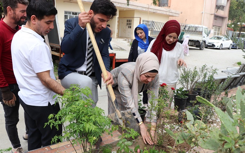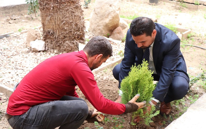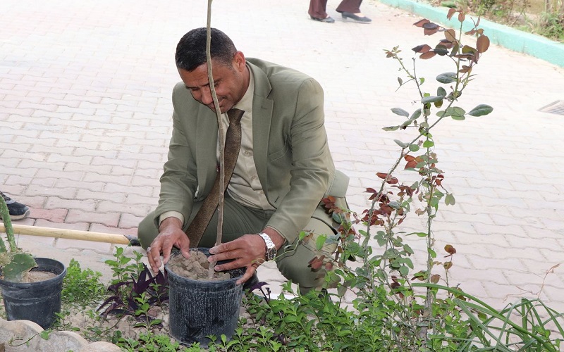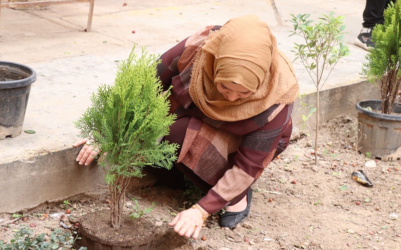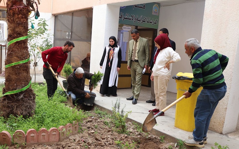 كلية الآداب تقوم بحملة تشجير في حدائقها