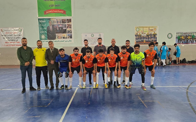 The participation of the Basic Education College team in the Faleh Al-Din Kaki indoor football championship.