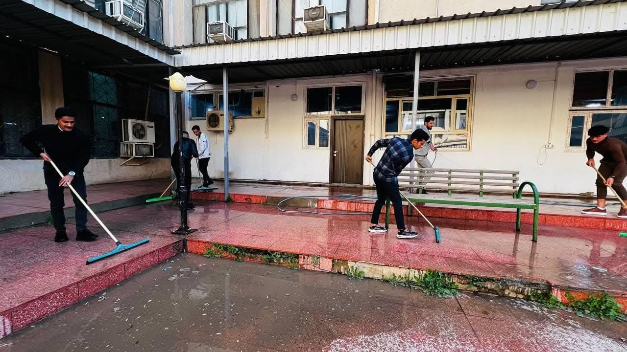 Under the patronage of Prof. Dr. Farhad Aziz Mohiuddin, Dean of the College of Education for Humanities, the Department of Educational and Psychological Sciences launched a volunteer campaign to wash and clean the department's halls in a step aimed at promoting positive values and a sense of belonging among students. A number of students from the department participated in the campaign, showing enthusiasm and dedication to work, stressing that a clean environment is an essential factor in achieving an ideal educational environment. The Dean also praised the efforts made by the participants in the campaign, stressing that these activities enhance the values of cooperation and teamwork, in addition to reflecting the bright image of students in their commitment to raising the level of the college at all levels. His Excellency stressed the importance of these campaigns in instilling a culture of maintaining cleanliness and order inside and outside the university environment.