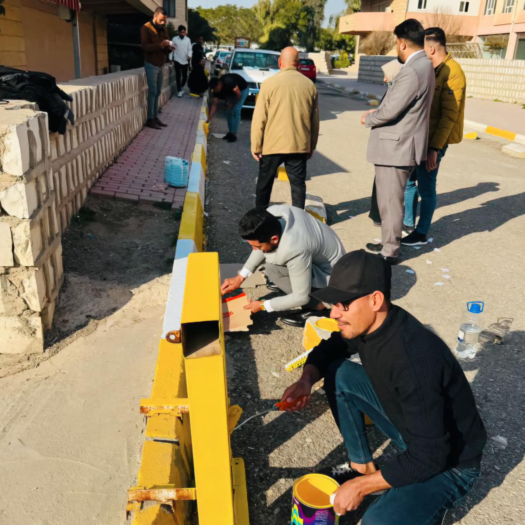 Under the patronage of the Dean of the College of Education for Humanities, Prof. Dr. Farhad Aziz Mohiuddin, the Department of Educational and Psychological Sciences, in cooperation with the Volunteer Work Committee, organized a voluntary campaign to paint and coordinate sidewalks as part of the college's efforts to enhance environmental beauty and develop a spirit of social responsibility among students. A number of students and professors from the department participated in the campaign, as they repainted the sidewalks with harmonious colors, which gave a civilized and aesthetic appearance to the college's facilities. The campaign also included work to arrange and organize the surrounding spaces in an initiative aimed at raising awareness of the importance of a clean and organized university environment. The Dean praised the spirit of cooperation and teamwork shown by the participants, stressing that such voluntary activities reflect the students' commitment to developing their university environment and enhance their values of giving and institutional belonging, noting that the college continues to support voluntary initiatives that contribute to improving the university environment and raising the level of awareness among students.