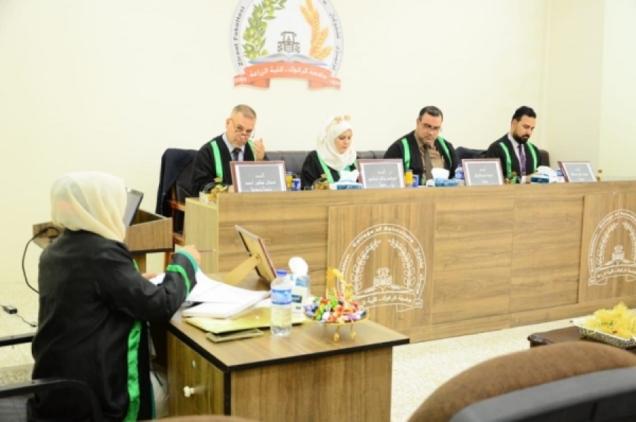 The Faculty of Agriculture discussed the tagged master’s thesis, the effect of adding different levels of cinnamon oil and thyme oil and their mixture on some quality, physical and microbial characteristics of minced and frozen local veal meat for different periods, by student Suhair Kamel Laibi, and supervised by Assistant Professor Dr. Adnan Shakur Ahmed. The study aimed to know the effect of Addition of different levels of cinnamon oil and thyme oil and their mixture in some qualitative, physical and microbial characteristics of minced veal and stored in freezing for different periods and the possibility of prolonging the period of preservation of veal samples in freezing using different concentrations of cinnamon oil and thyme oil and their mixture. The study concluded that adding natural oils with different concentrations to meat The minced calf preserved by freezing led to a prolongation of the shelf life of meat, a decrease in the percentage of loss during thawing and the percentage of loss during cooking, with a clear improvement in the capacity of the meat to retain water compared to the control treatment.