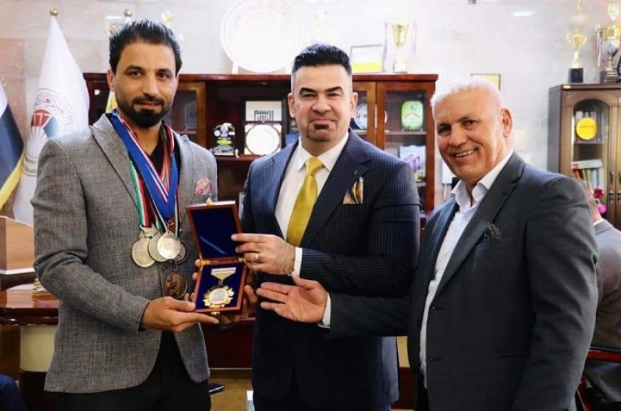 The President of the University of Kirkuk Prof. Imran Jamal Hassan (Ph.D), honored a student from the College of Administration and Economics (Arjuman Muhammad Abbas) for his participation in the Arab Championship, which was held in Bahrain, and for winning a gold medal in fencing, and many medals in various Asian and Arab championships. During honoring the student, the President of the University said: The university’s basic mission is to build a conscious and balanced personality of the students that carries science and knowledge. Also he concentrated on supporting the students, and assured the importance of honoring creative students; taking care of them; developing their skills, and motivating them, to graduate students who are capable of Serving their country.