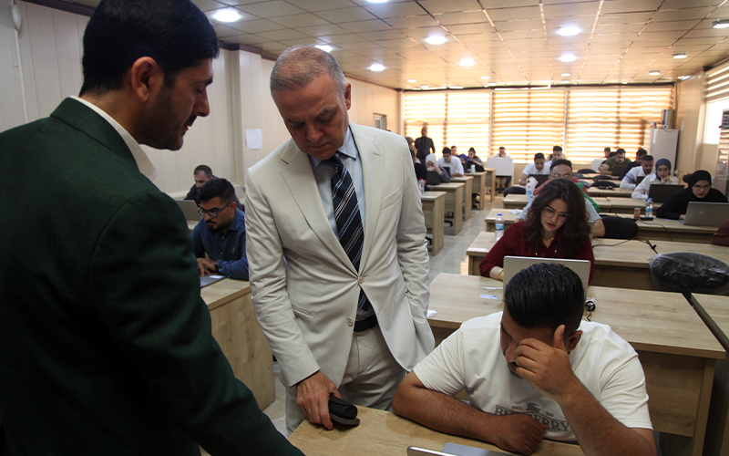 انطلقت اليوم الامتحانات التقويمية الشاملة لطلبة المرحلة السادسة في كليات الطب العراقية وبمتابعة مباشرة من قبل عميد كلية الطب بجامعة كركوك الدكتور ئالان عدنان وبحضور وفد من الفريق الوزاري المشرف على الامتحانات و بالتعاون مع مركز الحاسبة الالكترونية في مبنى رئاسة جامعة كركوك وتم توفير كافة المستلزمات اللازمة فيها مع المتابعة والتواصل المستمر لعميد الكلية مع الفريق الوزاري المشرف على الامتحانات متمنين الموفقية والنجاح للطلبة .
