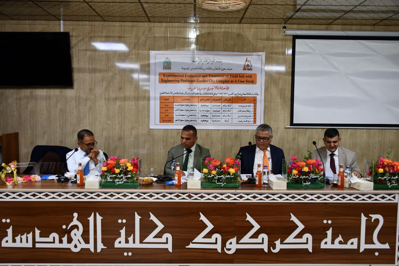 وجرت المناقشة على قاعة المناقشات في كلية الهندسة بجامعة كركوك، بحضور نخبة من الأساتذة والباحثين.