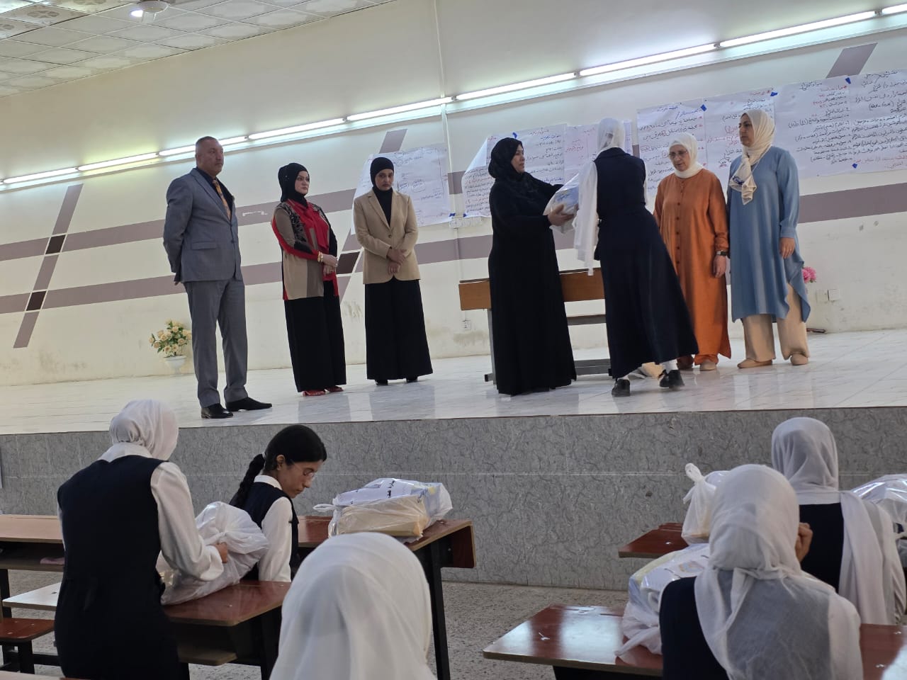 نظمت وحدة الأعمال التطوعية في كلية الإعلام حملة إنسانية لتوزيع المستلزمات الدراسية والملابس على الطالبات في إعدادية الواسطي للبنات بمحافظة كركوك.