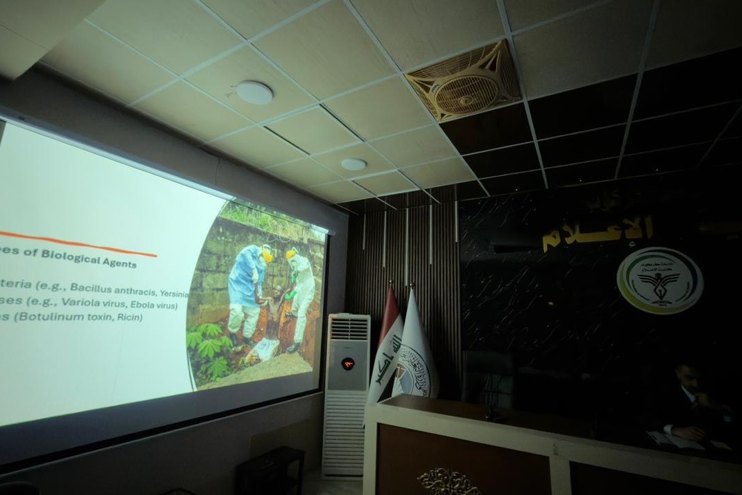 نظّمت كلية الإعلام بالتعاون مع شعبة الارشاد النفسي ندوة علمية حول مفهوم الحروب البايولوجية وأبعادها الصحية والإعلامية، ودور المؤسسات الأكاديمية في ترسيخ ثقافة الوقاية والاستجابة للأزمات، فضلاً عن أهمية الخطاب الإعلامي المسؤول في إدارة الأزمات الصحية وتحصين المجتمع من الشائعات والمعلومات المضللة.