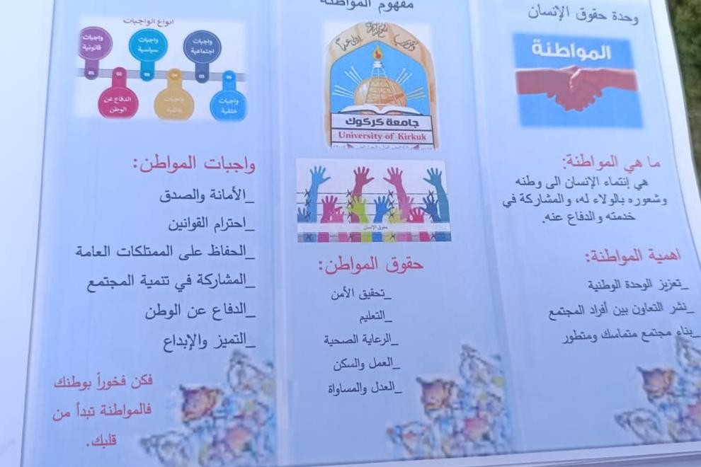 أقامت كلية الإعلام، ممثلةً بوحدة حقوق الإنسان، نشاطًا توعويًا تضمن توزيع بروشرات تثقيفية على الطلبة، بهدف نشر الوعي بمفهوم المواطنة وتعزيز القيم الوطنية.