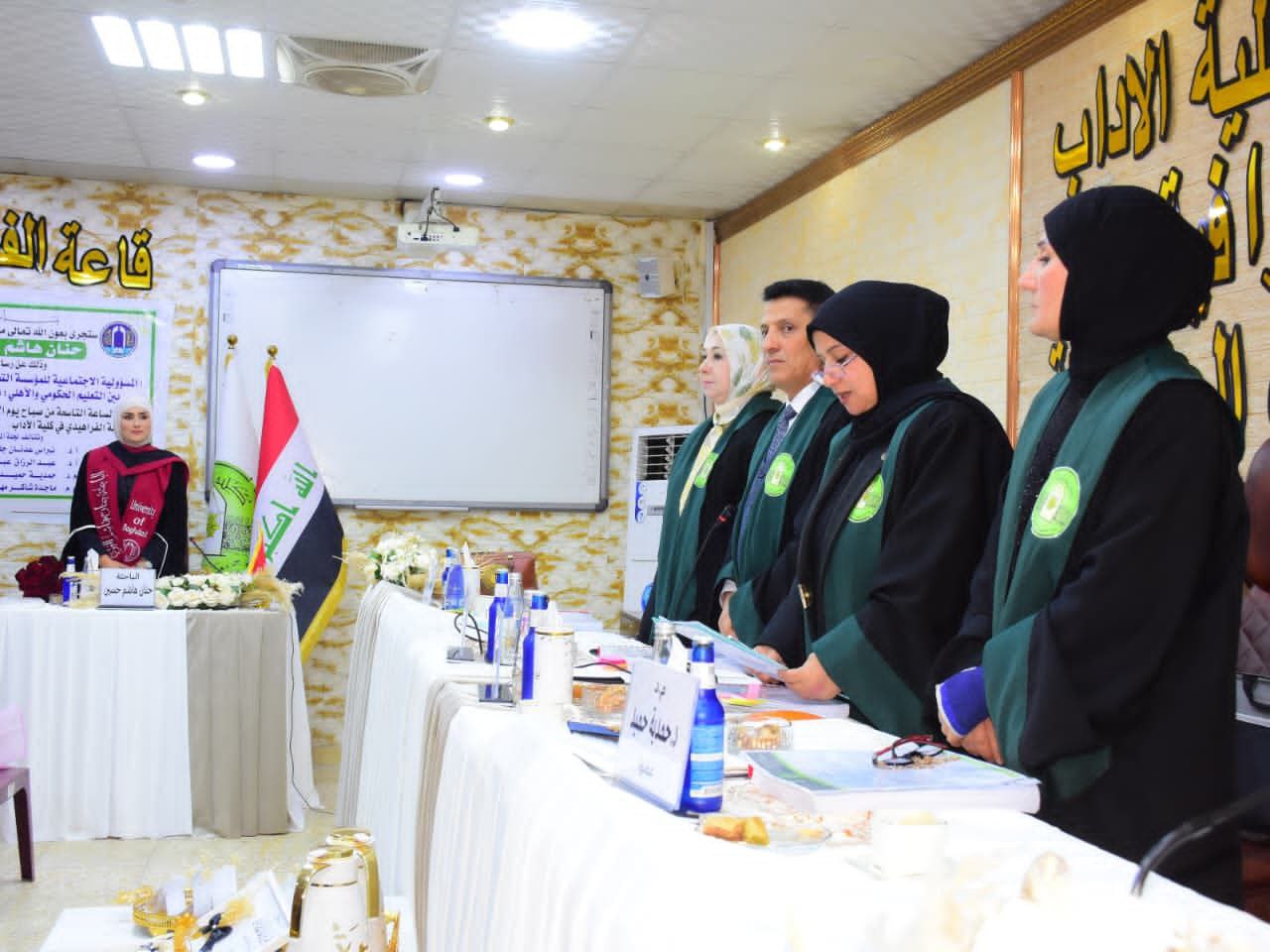 شارك التدريسي في كلية الإعلام، الأستاذ المساعد الدكتور عبدالرزاق عبدالله سعيد، في مناقشة رسالة ماجستير في جامعة بغداد / كلية الآداب / قسم علم الاجتماع، والموسومة «المسؤولية الاجتماعية للمؤسسة التعليمية تجاه المجتمع: دراسة مقارنة بين التعليم الحكومي والأهلي».