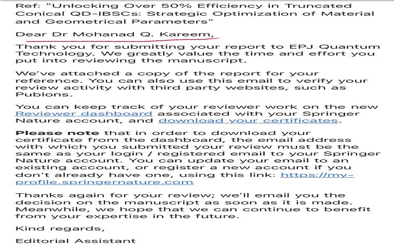 كمراجع علمي لمجلة EPJ Quantum Technology،