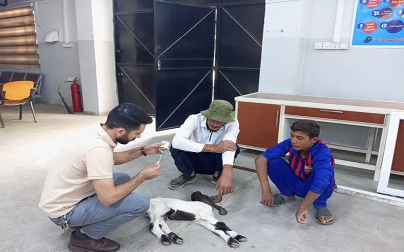 ضمن نشاطات الاطباء البيطريين في المستوصف البيطري التعليمي في كلية الطب البيطري ، ورود حالة مرضية تعاني من شلل في الأطراف الاربعة والتواء في الرقبة ، وتم تشخيص الحالة المرضية بعد اجراء الفحوصات السريرية واعطاءها العلاجات اللازمة ، كما تم توجيه المربي ببعض التعليمات والإرشادات الطبية البيطرية الصحية اضافةً الى شرح مخاطر مرض الحمى النزفية وطرق الوقاية منه ، الجدير بالذكر ان جميع الخدمات الصحية والعلاجية التي تقدم في المستوصف البيطري التعليمي مجانية .