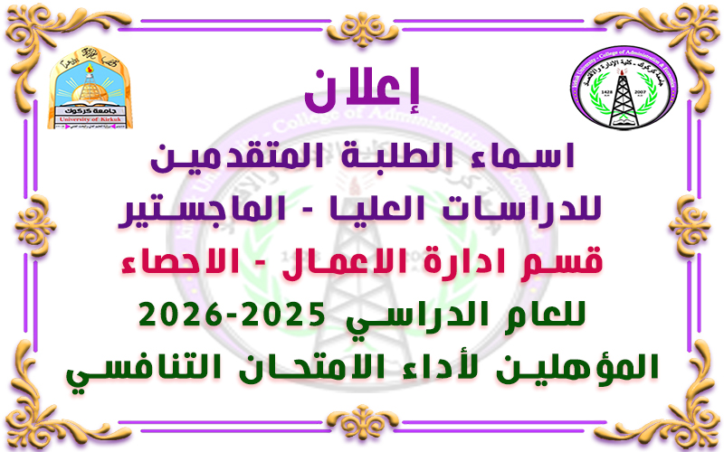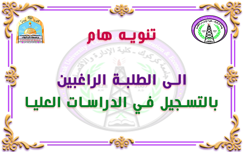 كلية الإدارة والاقتصاد تعلن عن اسماء الطلبة المقبولين في الدراسات العليا