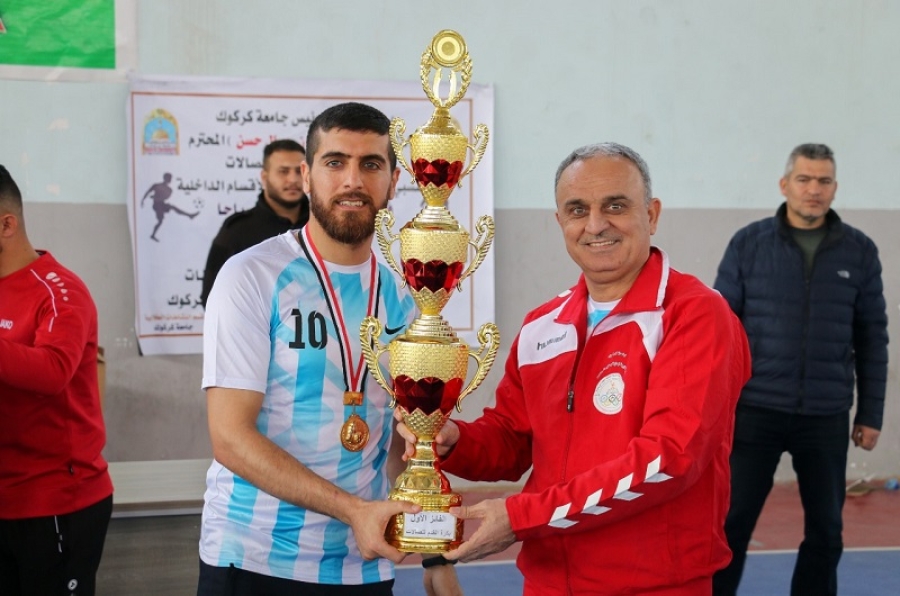 وتوج فريق كلية التربية البدنية وعلوم الرياضة بكأس البطولة بعد تغلبه في المباراة النهائية على فريق رئاسة الجامعة، بركلات الترجيح ( 4 -2 )في مباراة مثيرة، حضرها جمع غفير من منتسبي وطلبة الجامعة.