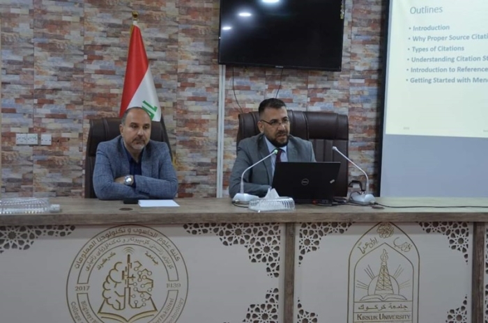 اقامت كلية علوم الحاسوب وتكنولوجيا المعلومات ورشة عمل تعريفية عن الاستشهاد بالبحوث العلمية بمشاركة تدريسي الكلية. وتناولت الورشة التي القاها الدكتور محمد رشاد بكر، التعريف بعمل الوحدة واهمية الاستشهاد بالبحوث بالنسبة للباحثين واثرها في التصنيف العالمي للجامعات، فضلا عن التطرق على استخدام برامج ادارة المصادر ، مستشهداً بأمثلة كبرنامج mendely والتعرف عليها وكيفية العمل بها.وهدفت الورشة على اطلاع التدريسبين على عمل وحدة الاستشهادات واهميتها في تسجيل البحوث العلمية واخذ عينات علمية من المصادر الدراسية، فضلا عن إيضاح الية الاستشهاد وذكرها في البحوث.