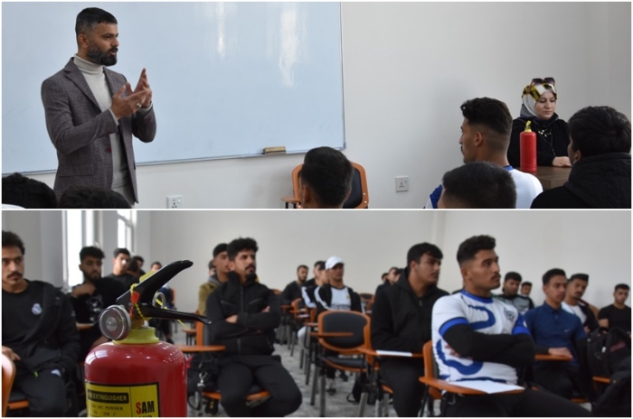 نظمت وحدة الدفاع المدني بالتعاون مع وحدة التأهيل والتوظيف والمتابعة في كلية التربية البدنية وعلوم الرياضة ورشة عمل عملية عن اساليب مكافحة الحرائق وطرق الوقاية . وتضمنت الورشة محاضرة عملية القاها حسن هاشم حقي ، بين فيها اهم النقاط الاساسية في عملية مكافحة الحرائق وابرز الواجبات التي تقع على عاتق الموظفين لتجنب حدوث الحريق في مؤسسات الدولة .