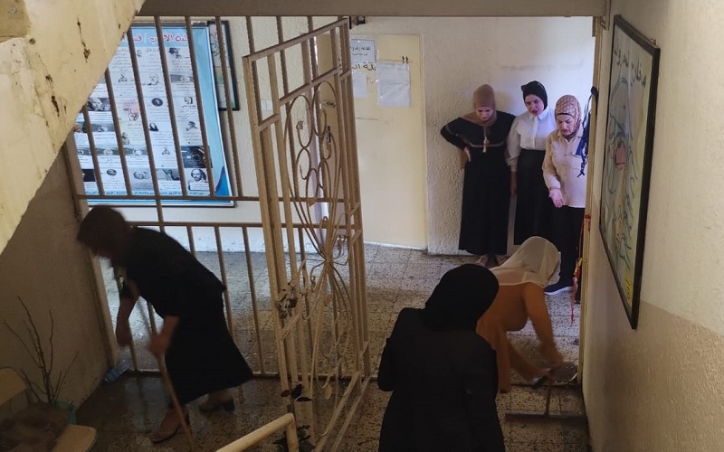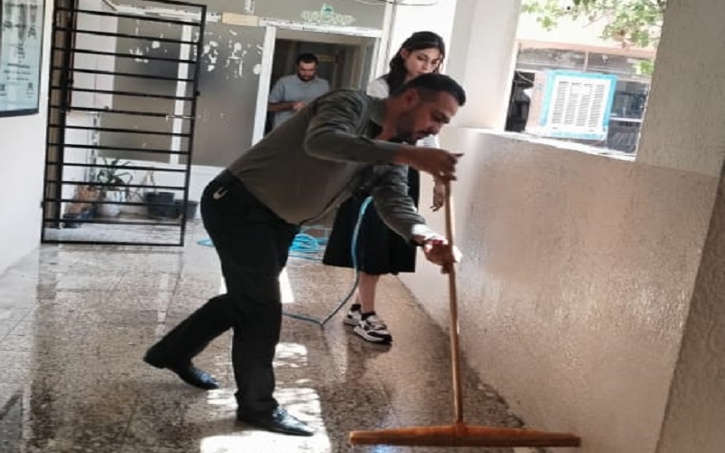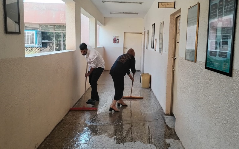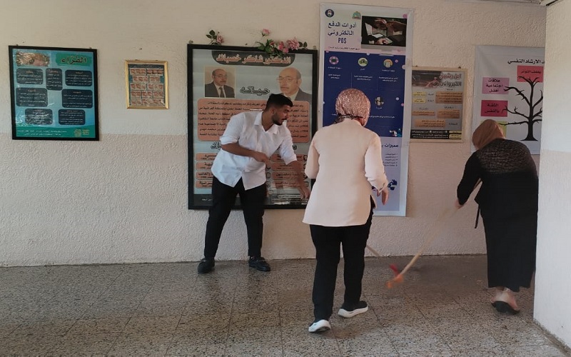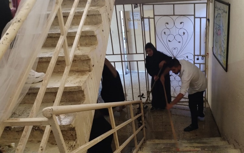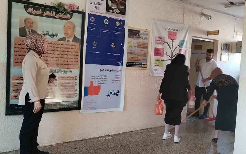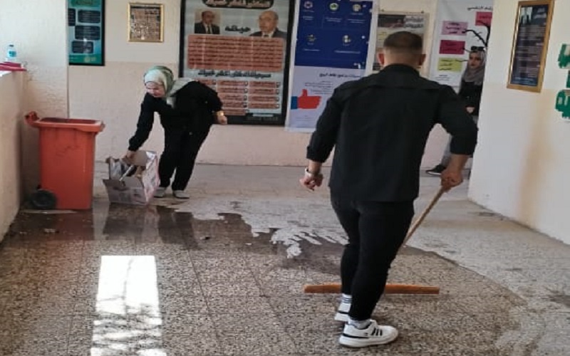 قسم اللغة العربية ينظم حملة تطوعية لتنظيف القاعات والممرات