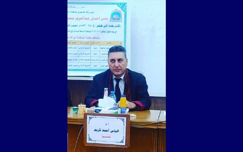 تدريسي بكلية الاداب يشارك بلجنة مناقشة رسالة ماجستير عن كتاب بغداد لإبن طيفور