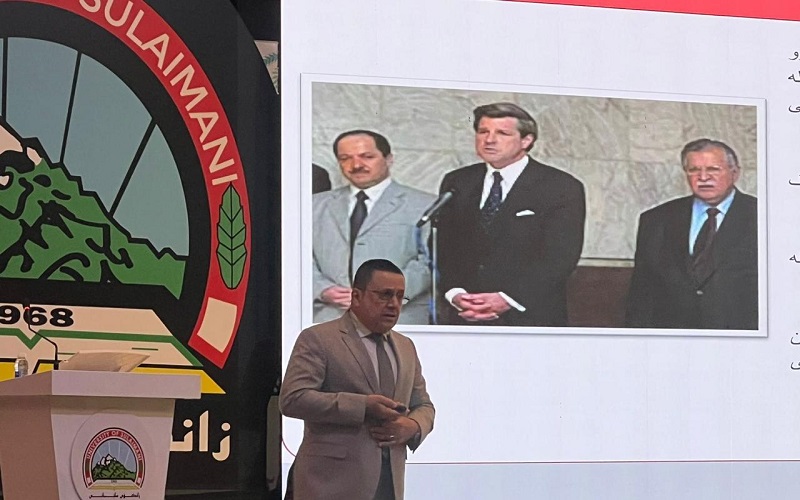 A lecturer from the College of Arts participates in a seminar on contemporary Arabic language