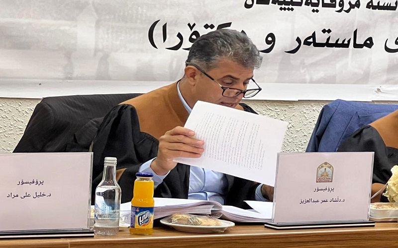 A faculty member from the History Department, College of Arts, participated as a member of a Ph.D. dissertation defense committee at the University of Sulaimani