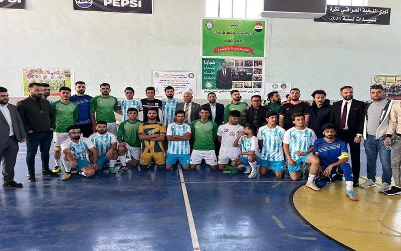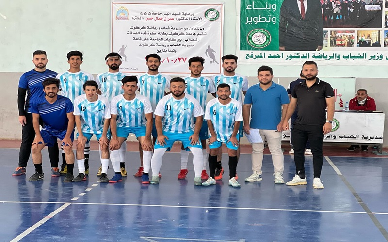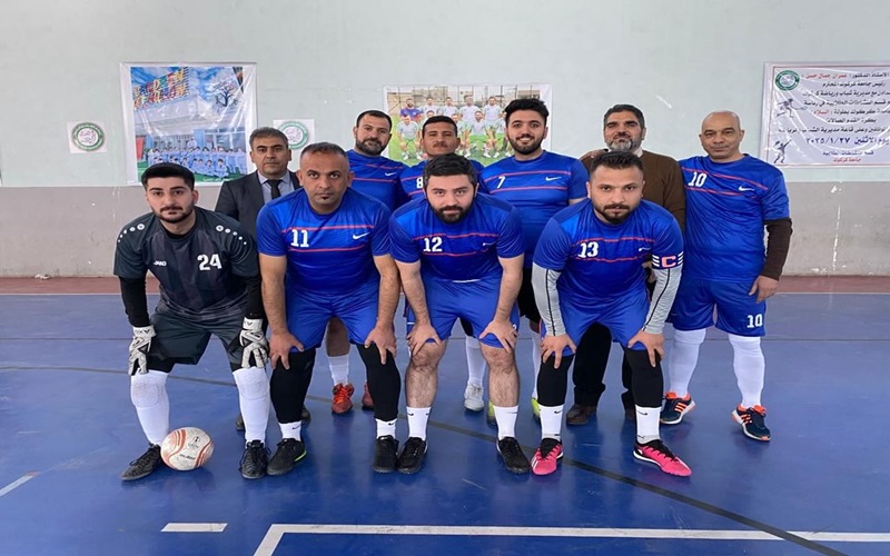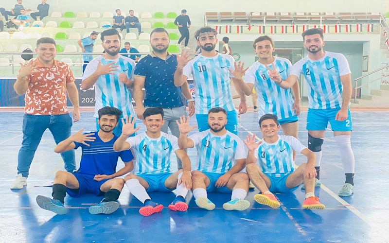 The participation of the Basic Education College team in the Faleh Al-Din Kaki indoor football championship.