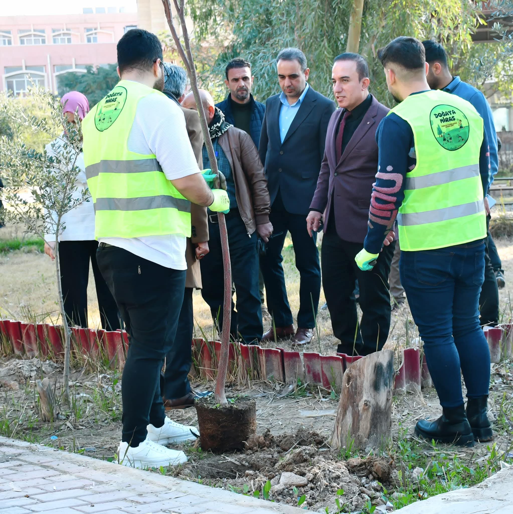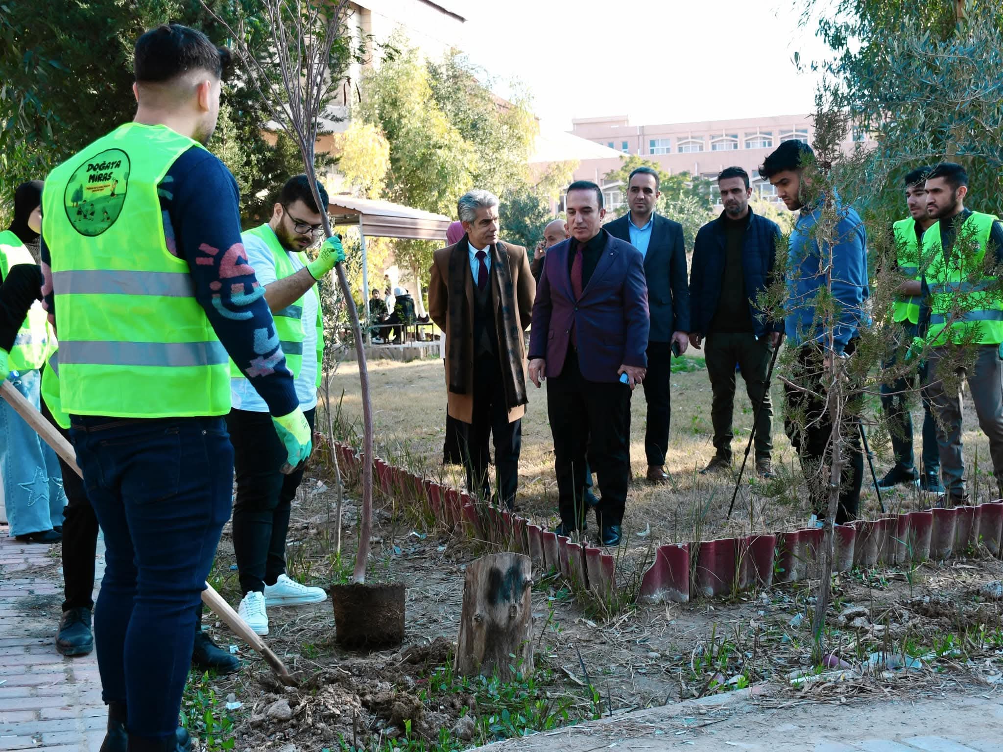 Under the patronage of the Dean of the College of Education for Humanities, Professor Dr. Farhad Aziz Mohiuddin, the Department of Turkish Language organized a voluntary campaign to plant trees within the framework of enhancing environmental awareness and spreading the culture of teamwork among students. The campaign witnessed active participation from students who took the initiative to plant seedlings in the college gardens with the aim of increasing green spaces and adding an aesthetic character that would positively reflect on the university environment. The Dean did not stop at supervising the initiative, but rather wore the volunteer uniform and bent down like them towards the ground, planting a tree with his hands as if he was secretly bidding it farewell and giving it a promise to grow under the shadow of a flag that does not bow. It was a lesson in humility and that true leadership is to get hands dirty with work and for the dream to become a tangible reality that is told with effort and sweat. He pointed out that such activities reflect the educational and human values that the college seeks to establish. He also praised the efforts of the students and those in charge of the campaign, stressing the need to continue such activities that benefit everyone.