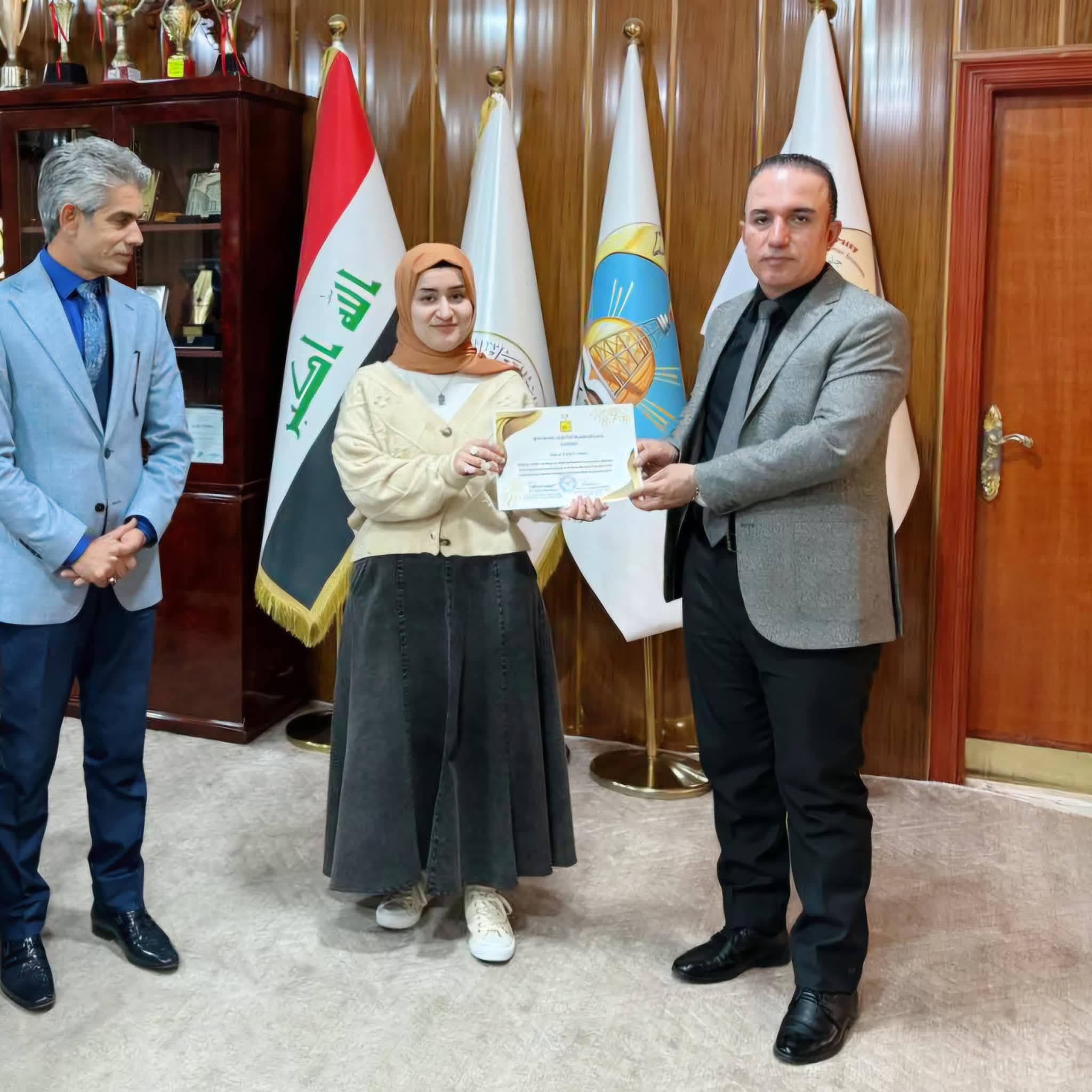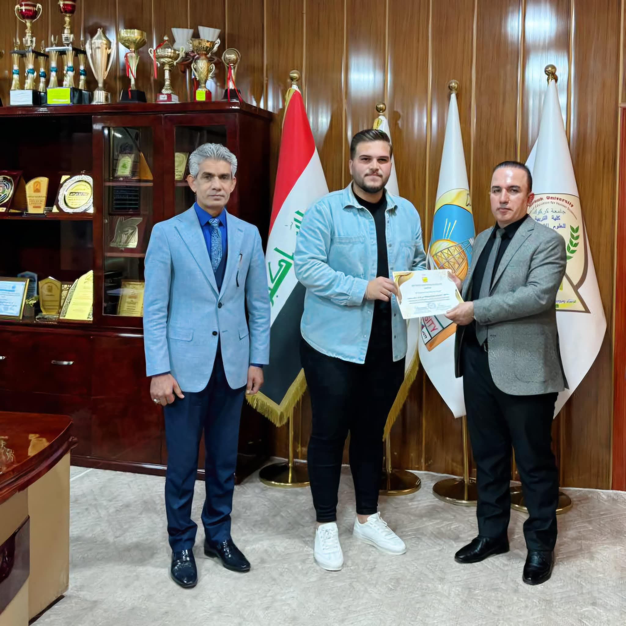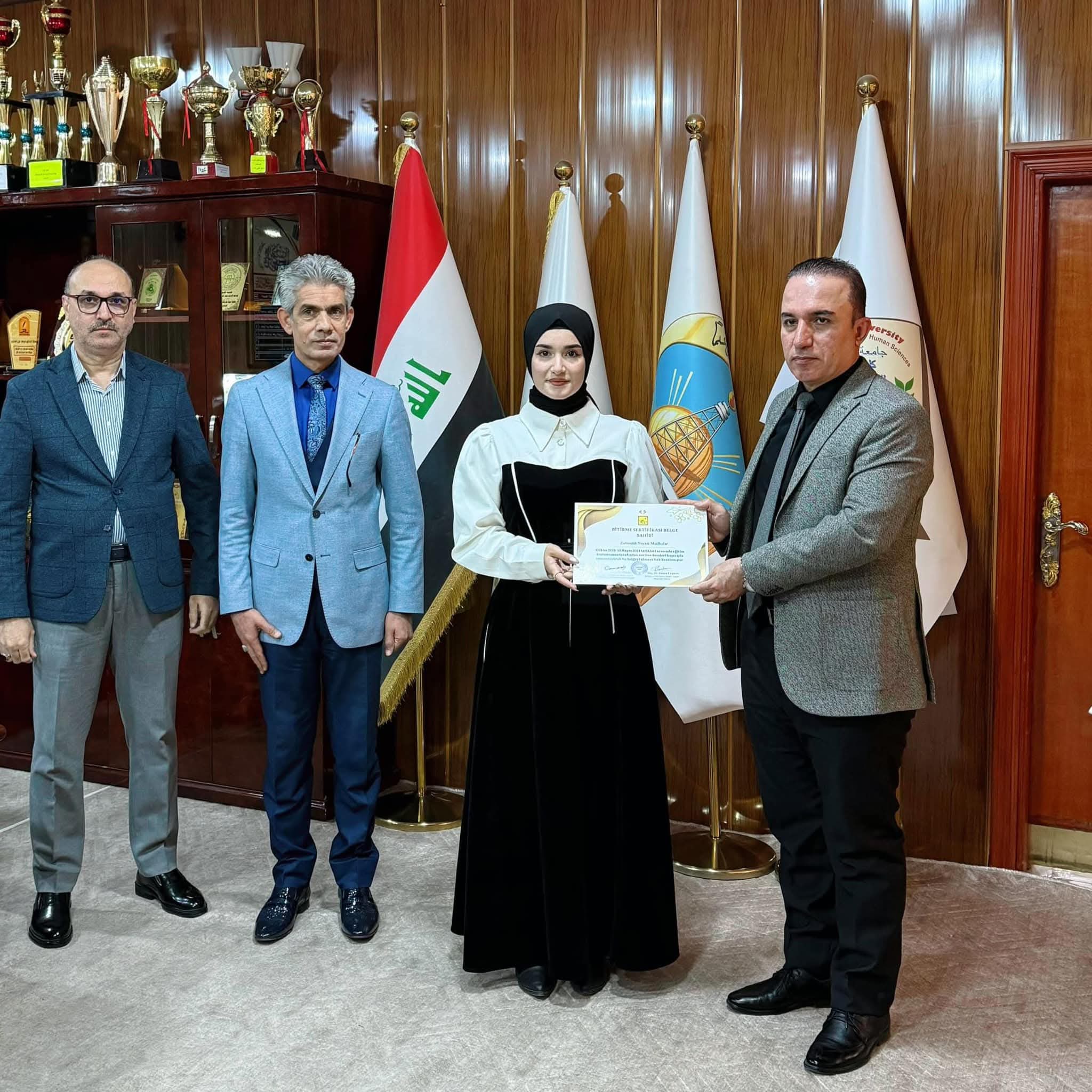 Under the generous patronage of the Dean, Prof. Dr. Farhad Aziz Mohiuddin, the Turkish Language Department at the College of Education for Humanities held a ceremony to honor distinguished students in the Dean's office. This honor came in appreciation of the distinguished academic efforts made by the students in their academic career and to motivate them to achieve more excellence and success. The Dean expressed his pride and appreciation for the academic level demonstrated by the students, stressing that this excellence is the fruit of their diligence and commitment to the solid academic standards that the college seeks to establish. He also pointed out the importance of supporting outstanding students as they are the nucleus of the future that will contribute to raising the scientific and academic level of the college. In conclusion, certificates of appreciation and symbolic gifts were distributed to the honored students in an atmosphere full of pride and honor.