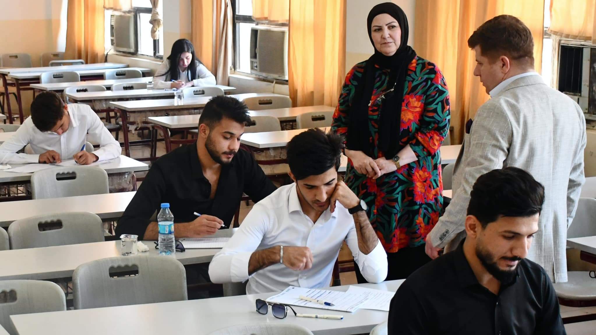 In implementation of the twinning agreement between the English language departments in both the College of Education for Human Sciences at the University of Kirkuk and the University College of Al-Kitab, and according to the directives of the Scientific Supervision and Evaluation Service in the Ministry of Higher Education and Scientific Research, the joint twinning exams for the third stage in the English language departments in the two colleges were launched on Wednesday, 4/17/2024, which It was followed up by the Dean of the College, Professor Dr. Farhad Aziz Mohieddin, and full measures were taken, including setting questions and coordinating examinations at Al-Kitab University to achieve the scientific and academic goal desired from this educational process. In addition, the examination process will continue during the coming days and according to the examination schedule designated for the twin subjects of the stages. Academic studies included in joint examinations. Organizing twinning examinations is one of the important and necessary matters in the field of higher education and evaluating academic competence. In general, it contributes to raising the level of education and developing study programs in universities and private colleges.
