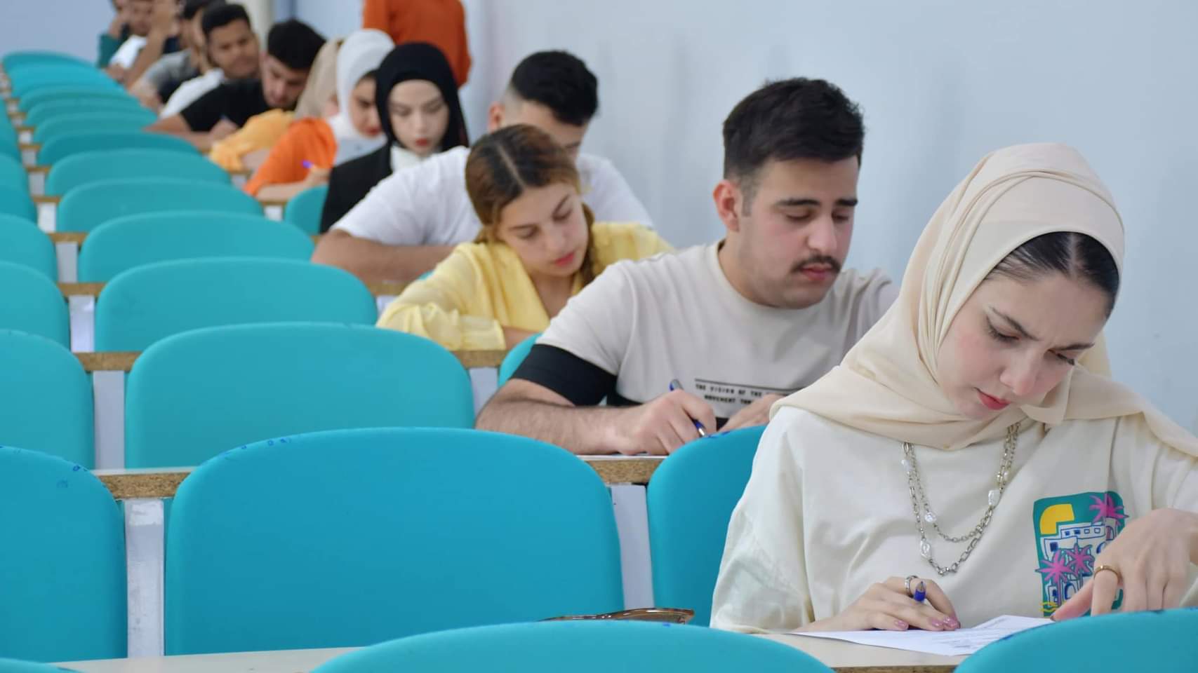 In accordance with the twinning agreement between the departments of “English Language and Qur’anic Sciences” in the College of Education for Human Sciences at the University of Kirkuk, the University College of Al-Kitab, and the University College of Al-Qalam, and in accordance with the directives of the Scientific Supervision and Evaluation Service at the Ministry of Higher Education and Scientific Research, joint twinning exams for the third stage were launched in the two English language departments. In the Faculties of Education for Humanities and the Faculty of Al-Kitab University for the third day today, Monday, April 22, 2024.