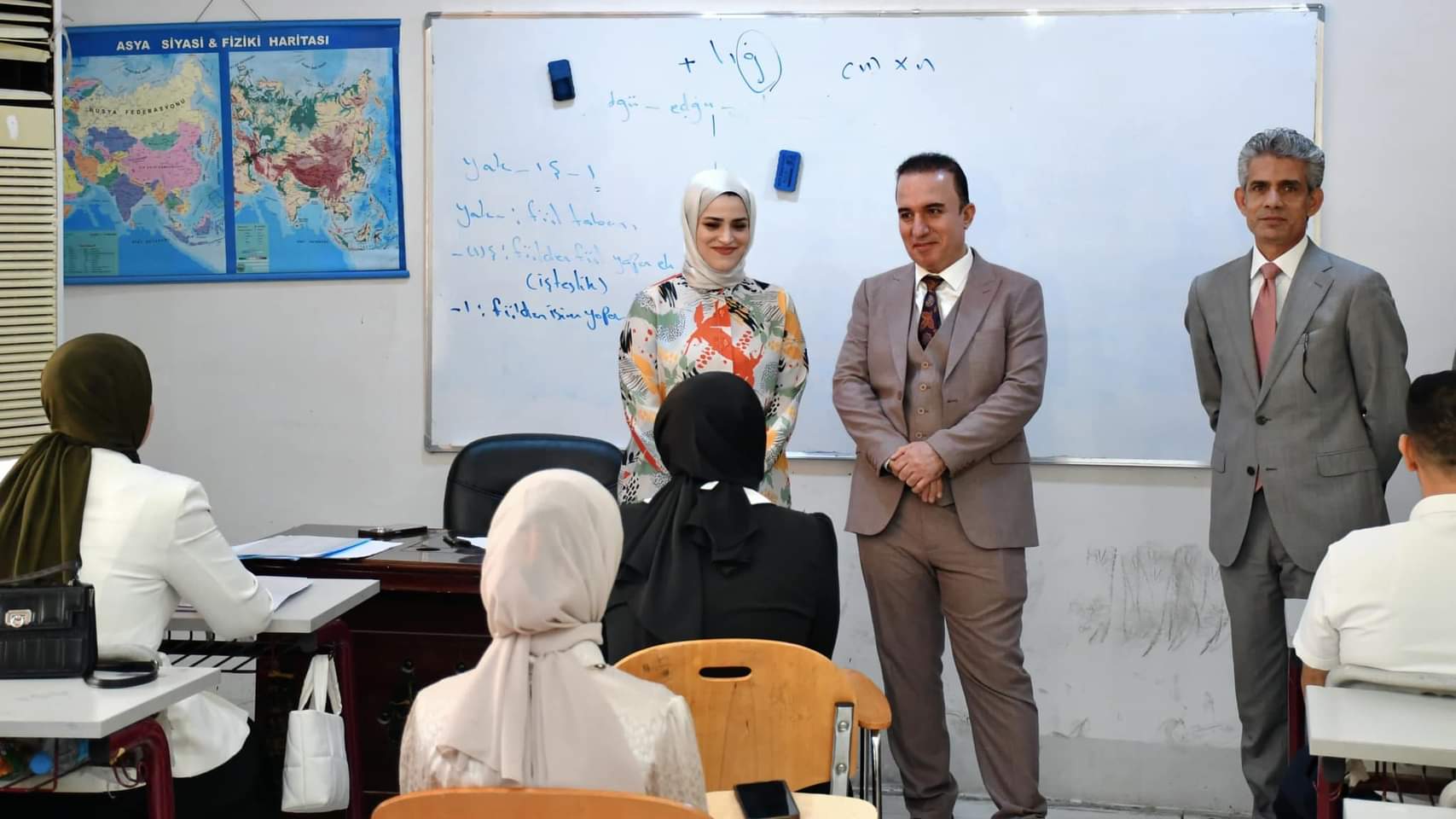 Out of his keenness to regularly follow up on the progress of the educational process, the Dean of the College of Education for Humanities, Professor Dr. Farhad Aziz Mohieddin, inspected the discussions of preliminary studies students in all departments, in which his Excellency showed interest in the precise details of the learning process and student evaluations. He also participated in the students’ discussions and listened to their presentations and the presentations of their professors in a comprehensive manner. Friendly and open, the visit was an opportunity to provide support and encouragement to the students and express the college administration’s pride in the students’ level of progress and motivate them to move forward in their studies and research.