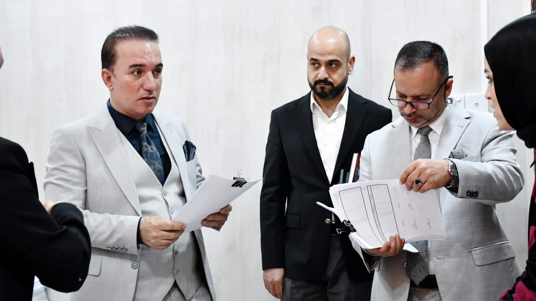 The Assistant President of the University for Scientific Affairs, Professor Dr. Abdullah Ali Muhammad Tamim, accompanied by the Dean of the College of Education for Human Sciences, Professor Dr. Farhad Aziz Mohieddin, inspected the examination committees in the scientific departments with the aim of assessing their readiness for the final examinations, from receiving students and conducting the examinations, as it is the work of the examination committees. It is a vital and necessary work that aims to ensure the safety and integrity of the examination process and the quality of academic evaluation.
