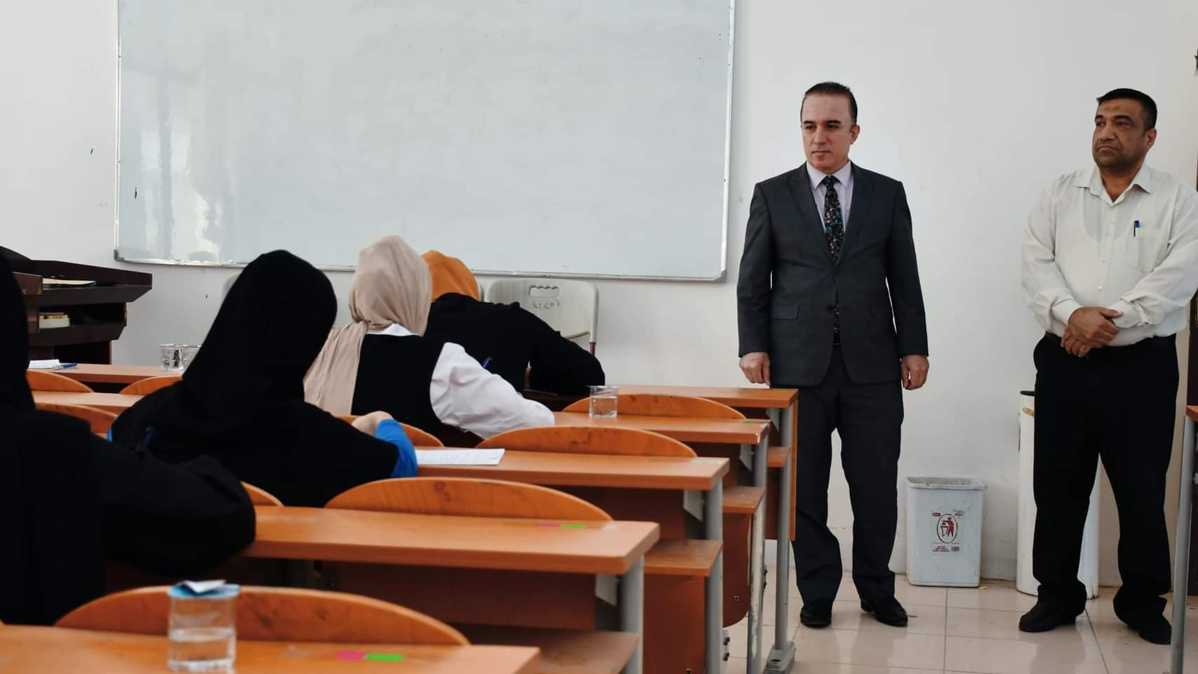 With intensive inspection follow-up by the Dean of the College of Education for Human Sciences, Professor Dr. Farhad Aziz Mohieddin, today, 5/15/2024, he made a careful tour of the examination halls and examination committees.
