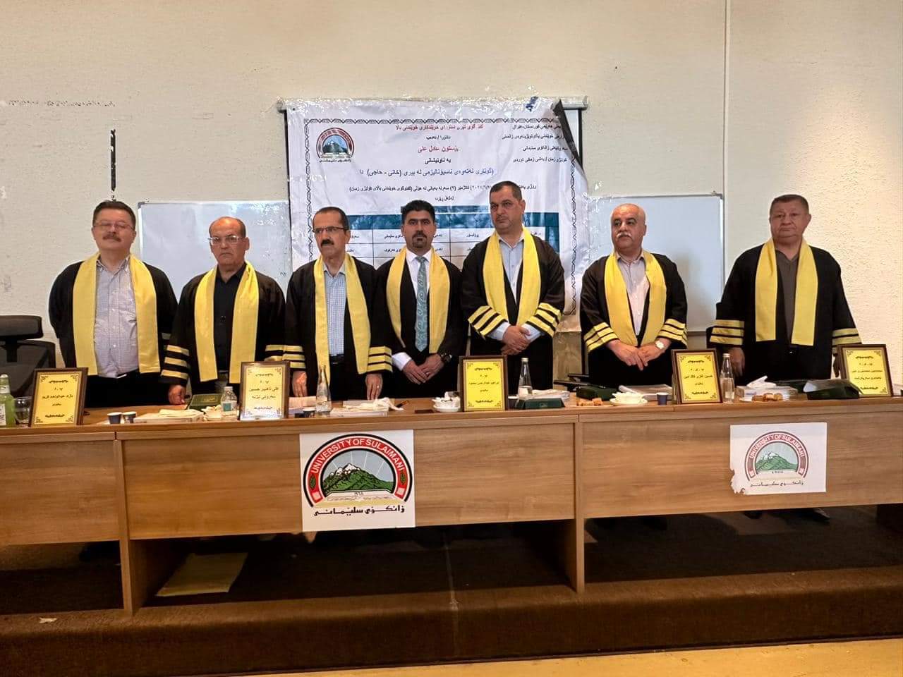 On Sunday, 6/9/2024, Professor Dr. (Azad Abdul Wahed Karim), a lecturer from the Kurdish Language Department in the College of Education for the Humanities, participated in the discussion committee for the dissertation of doctoral student Beston Adel Ali (a lecturer in the Kurdish Language Department) tagged (The National Discourse of the Nation in Khani’s Thought) Haji) in the graduate studies hall of the College of Languages at Sulaymaniyah University.
