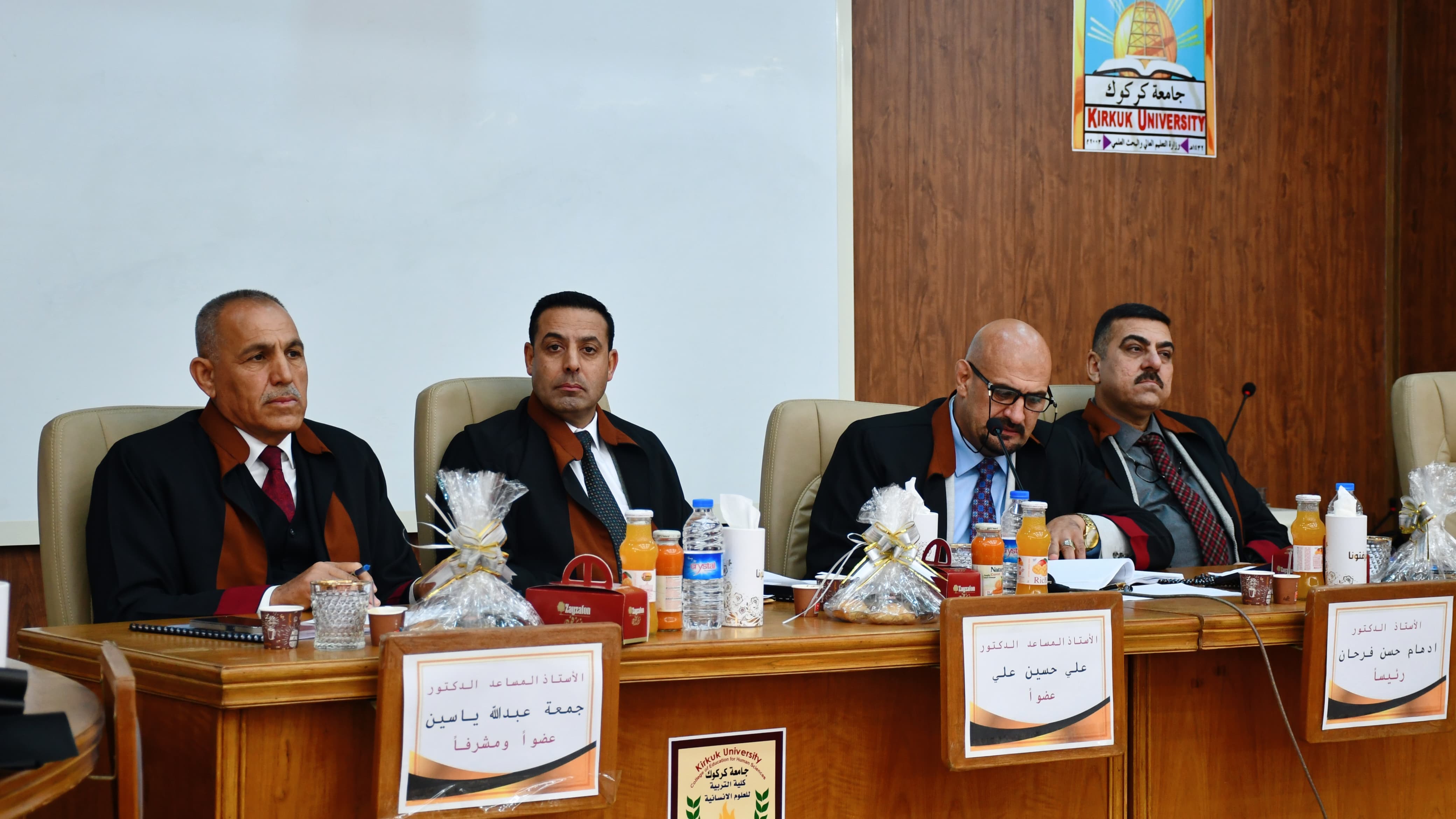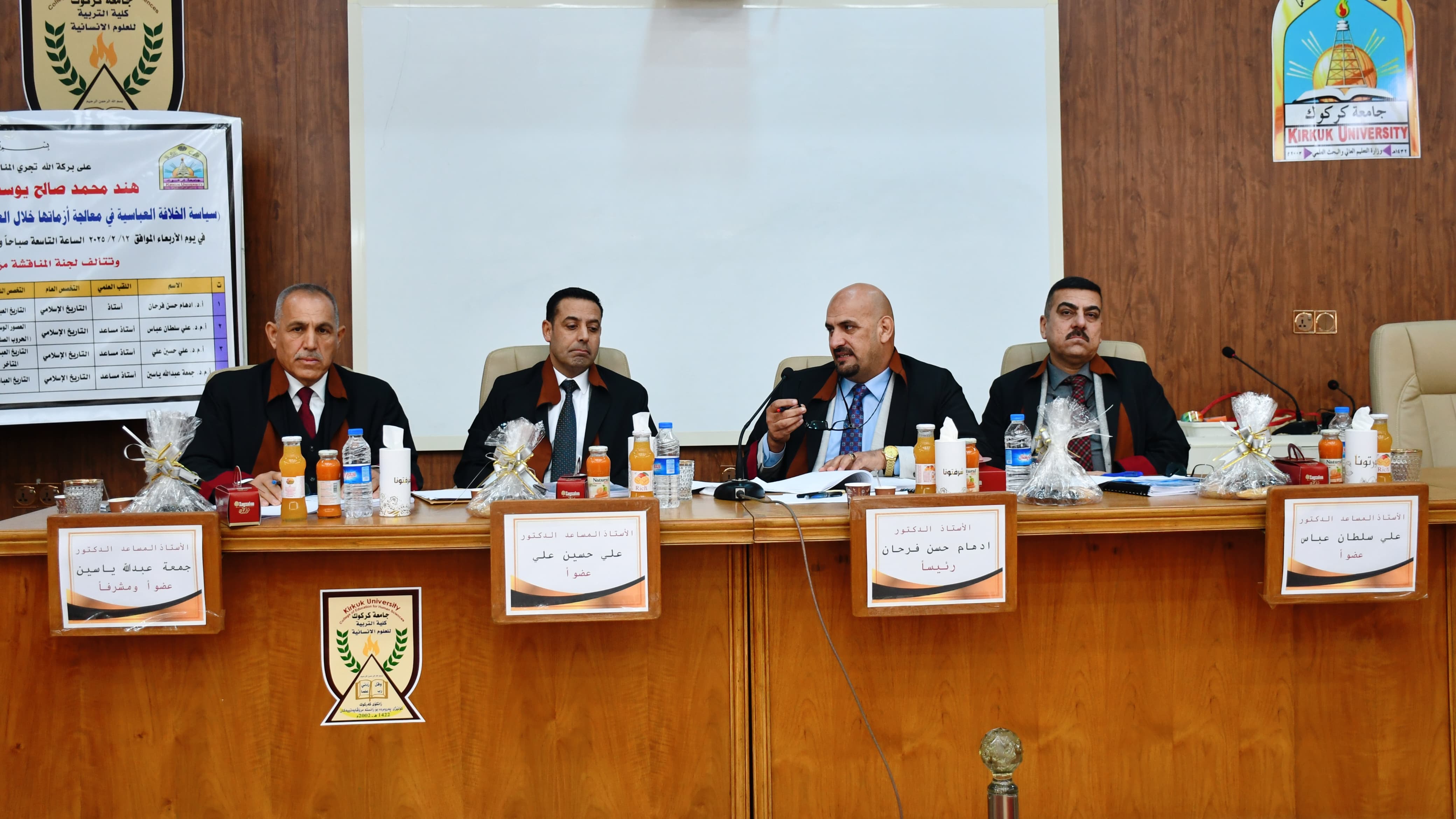 In the presence and under the patronage of the Dean of the College of Education for Human Sciences, Professor Dr. Farhad Aziz Mohiuddin, the master's thesis entitled "The policy of the Abbasid Caliphate in dealing with its crises during the first Abbasid era 132-247 AH / 749-861 AD" was discussed in the Department of History by the student Hind Muhammad Salih Yusuf in the college hall on 2-12-2025.