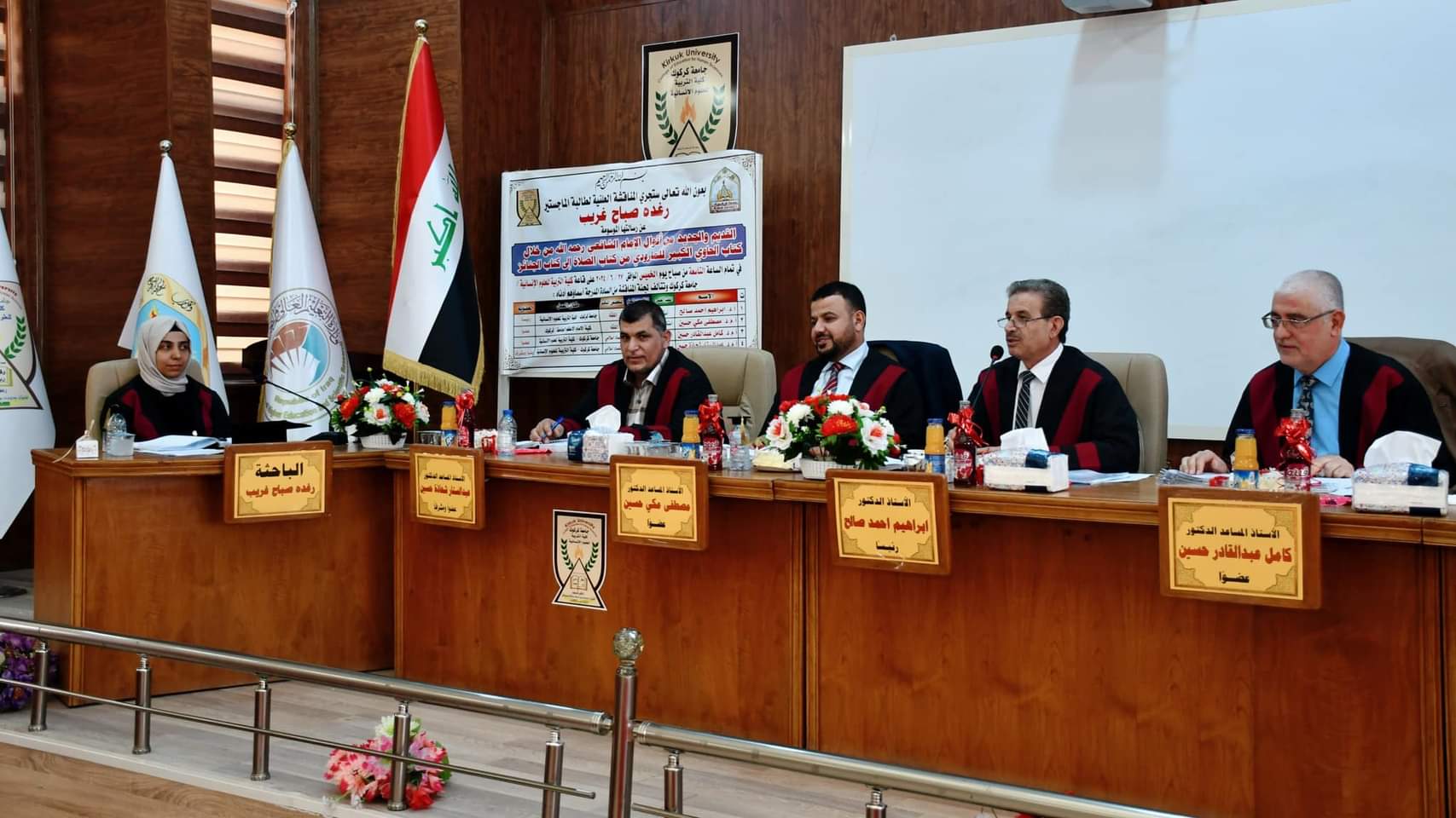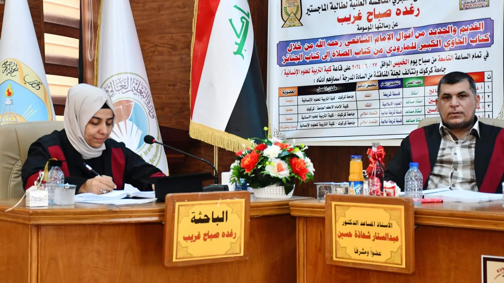 In the presence of the Dean of the College of Education for Human Sciences, Professor Dr. Farhad Aziz Mohieddin, the Department of Qur’anic Sciences and Islamic Education discussed the master’s thesis entitled (The old and the new from the sayings of Imam Al-Shafi’i, may God have mercy on him, through the book Al-Hawi Al-Kabir by Al-Mawardi, from the Book of Prayer to the Book of Funerals) by researcher Raghda Sabah Ghareeb.