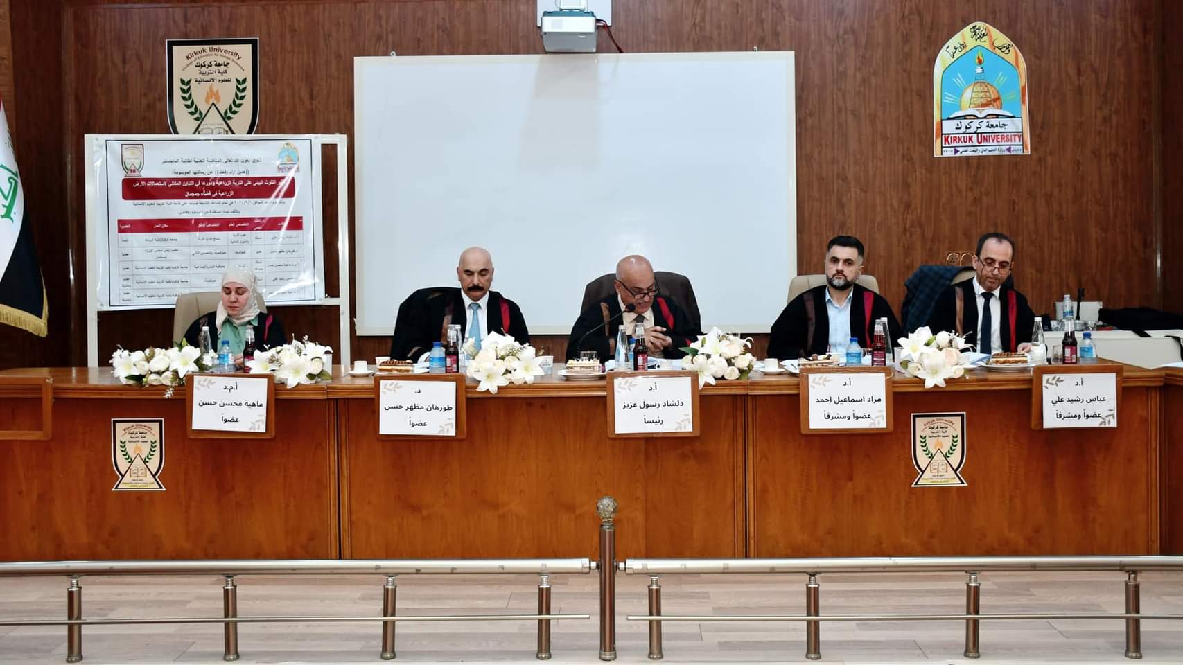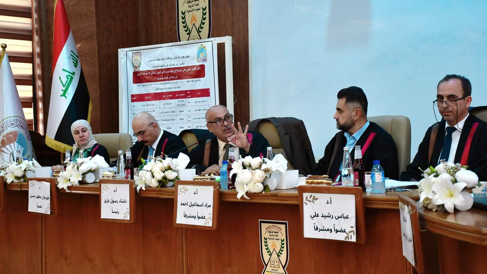 Under the patronage and attendance of the Dean of the College of Education for Humanities, Prof. Dr. Farhad Aziz Mohiuddin, the master's thesis entitled (The impact of environmental pollution on agricultural soil and its role in the spatial variation of agricultural land uses in Jamjamal District) was discussed in the Department of Geography by the student Hadeel Aram Raafat in the college hall on 9/1/2024.