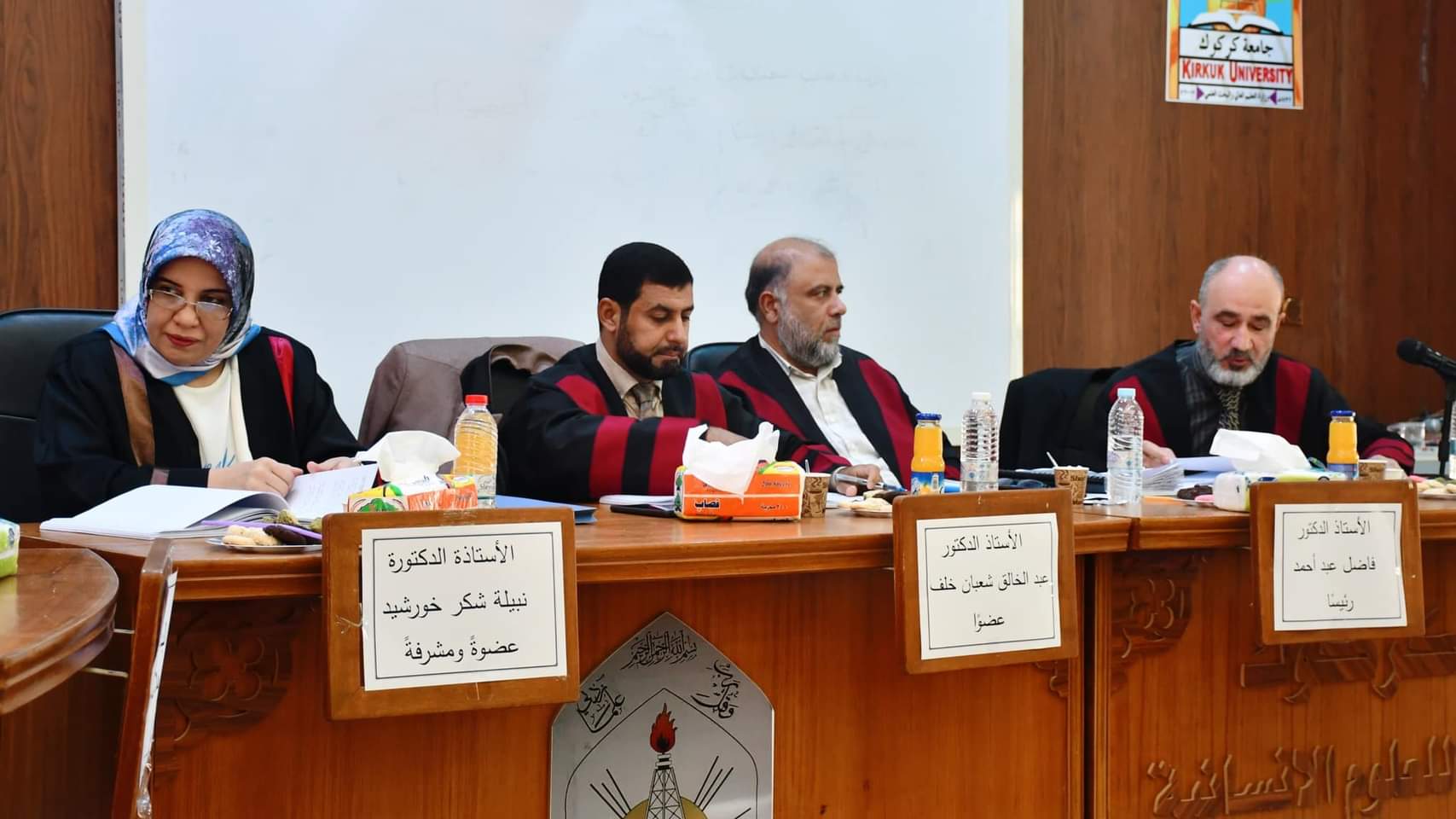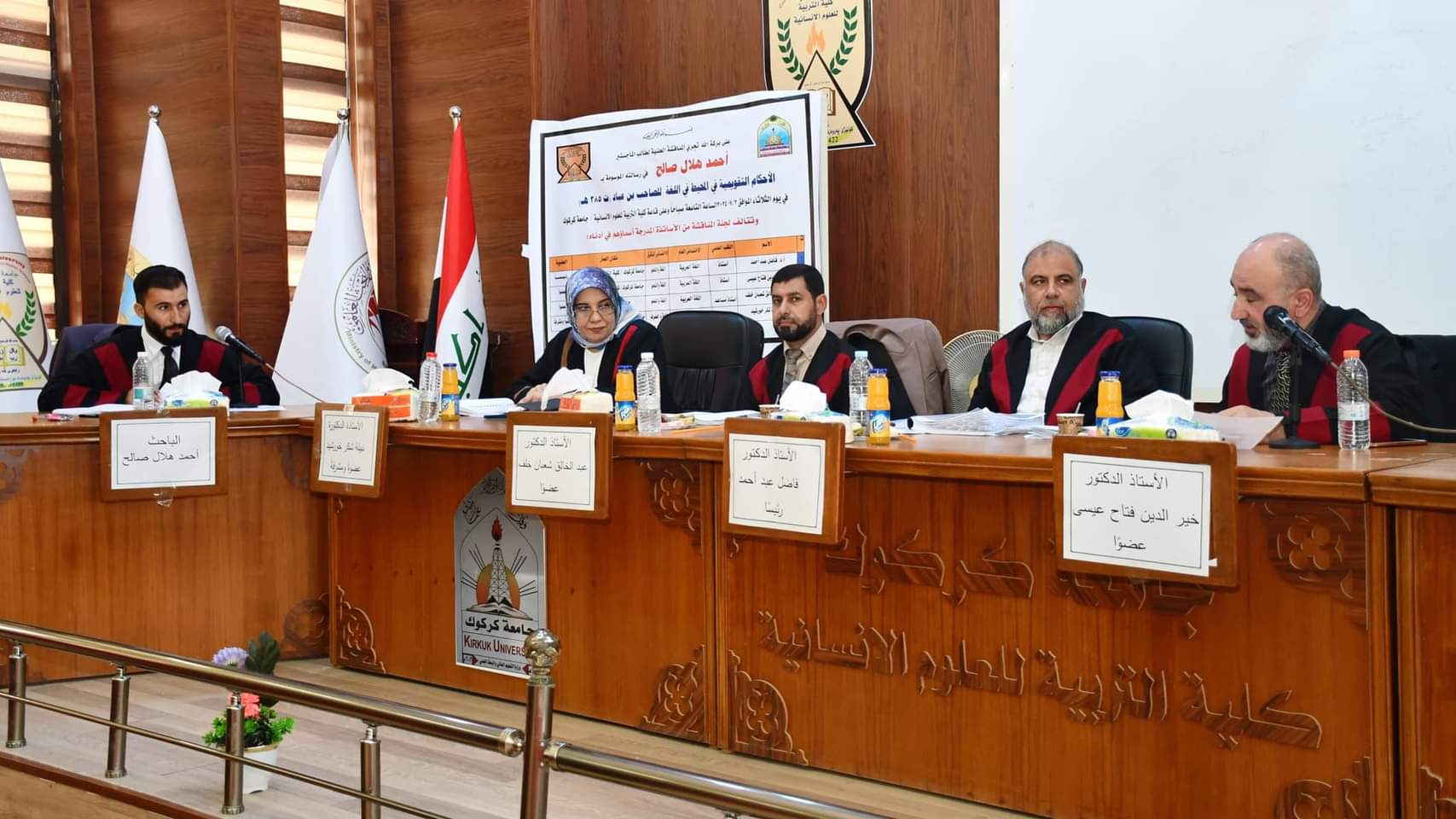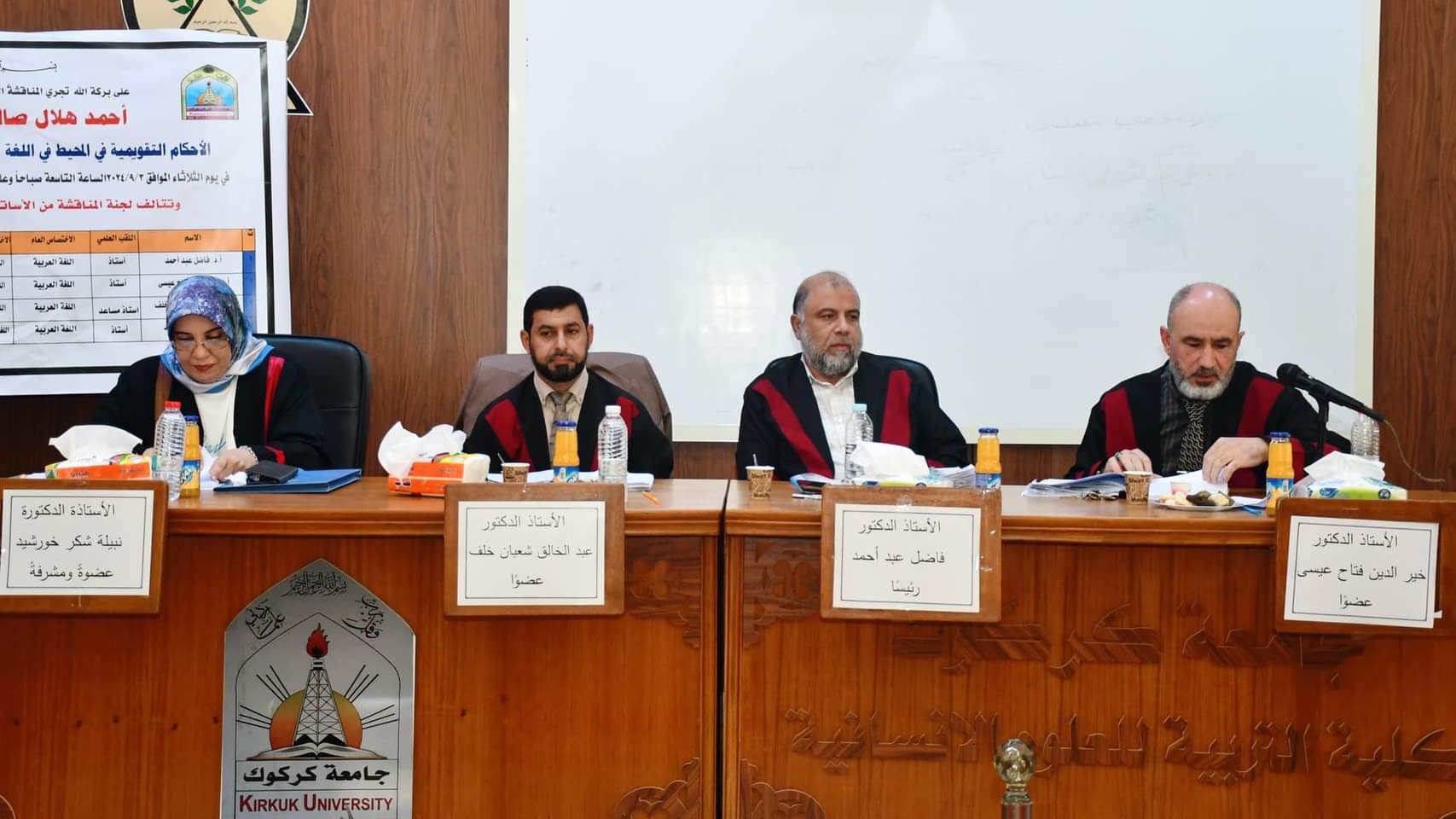Under the patronage of the Dean of the College of Education for Humanities, Professor Dr. Farhad Aziz Mohi El-Din, the master's thesis entitled (Evaluative Rulings in Al-Muheet in the Language of Al-Sahib Ibn Abbad d. 385 AH) was discussed in the Department of Arabic Language by the student Ahmed Hilal Saleh and in the college hall on 9/3/2024