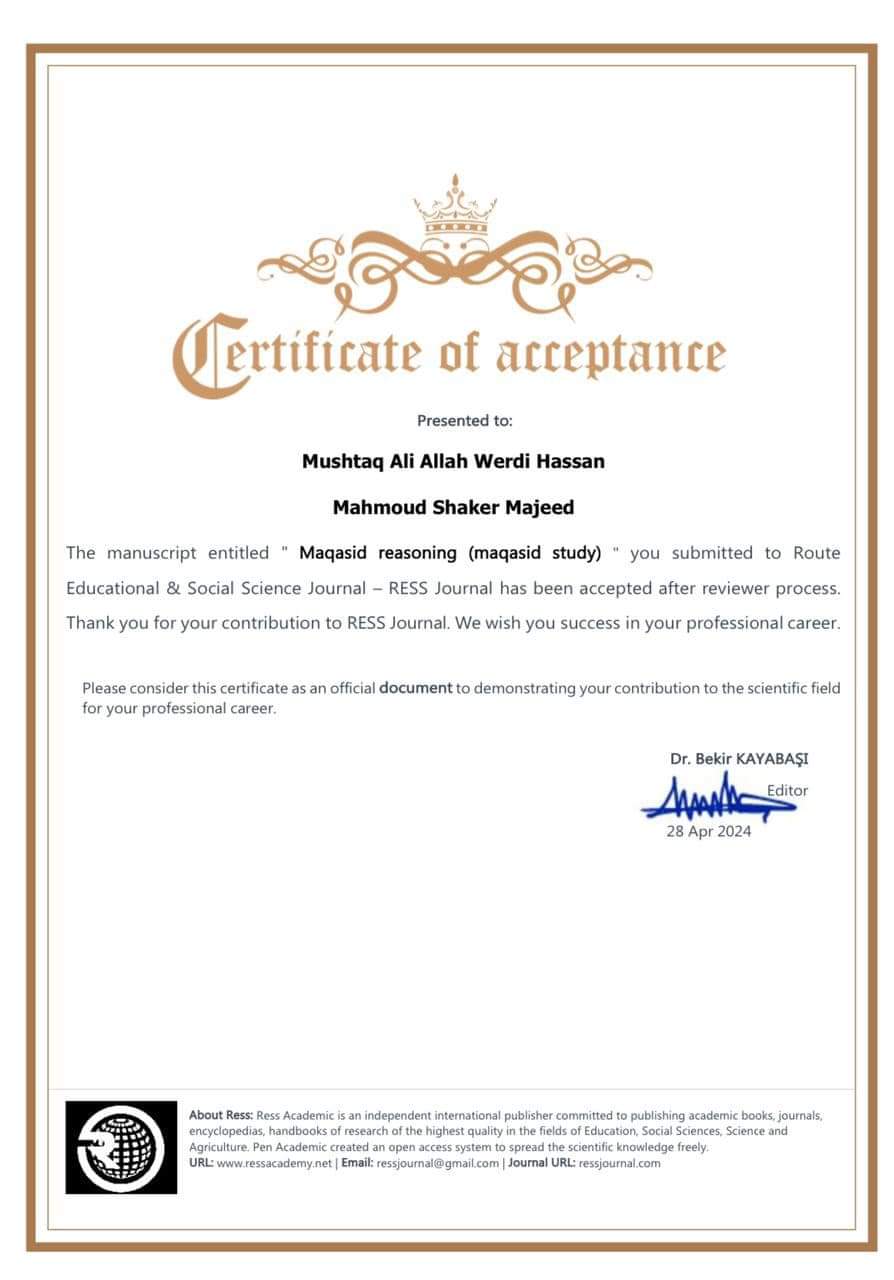 A lecturer in the Department of Quranic Sciences and Islamic Education, Asst. Prof. Dr. Mushtaq Ali Allah Wardi, published his scientific research with the participation of Prof. Dr. Mahmoud Shaker Majeed, a lecturer in the College of Basic Education, entitled (The Purposeful Explanation: A Study of Purposes), which means explaining rulings by rulings and goals and exploring the legal secrets in texts. It deals with the contents of texts and links them to their meanings. The scholars of Usul have spared no effort in researching the meanings of words and clarifying their issues, but work and diligence are based on more than this. Therefore, it is required of the mujtahid to know the science of objectives, because the purposeful or interest-based explanation is more general and comprehensive than the partial or analogical explanation. Therefore, the meaning of the text may not be sufficient for the ruling, so the jurist uses the ruling and the intended goals of the text to reach the legal ruling, and with it the suitability of legitimacy for every time and place becomes clear. In turn, His Excellency the Dean, Professor Dr. Farhad Aziz Mohiuddin praised the efforts made by the professors in publishing their research in international journals, praising the valuable contribution and high scientific level that reflects the pioneering role of the faculty members in the college. His Excellency stressed the importance of scientific research in raising the level of the college and its academic and scientific progress, expressing his continuous support for their efforts and encouraging them to achieve more scientific and research achievements.