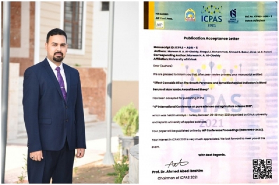 The Associate Dean for Scientific Affairs at the College of Veterinary Medicine at the University of Kirkuk, Dr. Marwan Hatem Abdullah, published a study in the American (AIP) magazine, which is classified within Scopus containers, for the research tagged (Effect cannabis oil on the growth performance and some biochemical indicators in blood serum of male lambs awassi breed). sheep). Abdullah explained that the study dealt with cannabis oil (medical marijuana) as a dietary supplement in the biochemical and immunological growth indicators in the blood serum of sheep rams. And he used CBD cannabidiol, which has become increasingly used in both human and veterinary medicine, and which contains a lesser percentage of 0.3% (THC tetrahydrocannabinol) used in most countries of the world. He indicated that the study concluded several statistical indications in the levels of cholesterol, total protein, and albumin. , globulin, blood urea, and enzymes (ALT, AST) which have an important role in improving the efficiency of growth in some biochemical characteristics in the serum of sheep rams.
