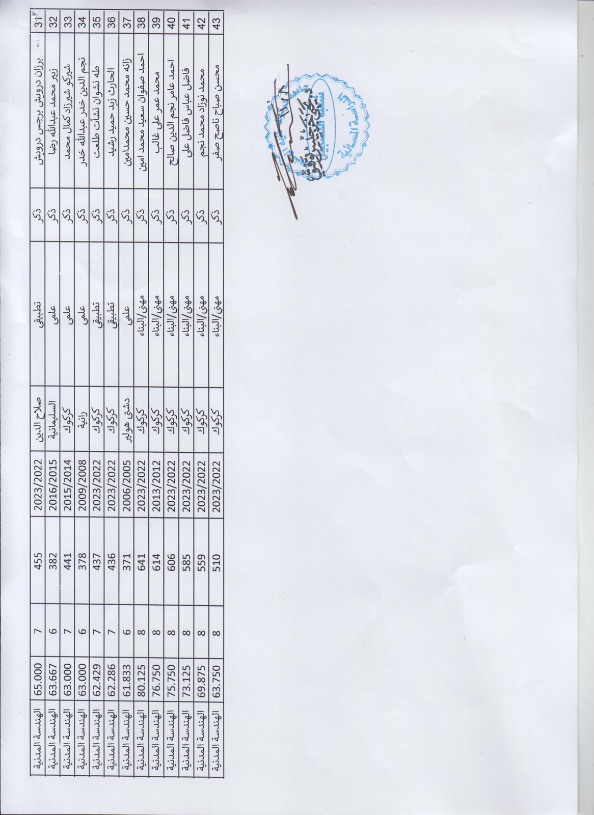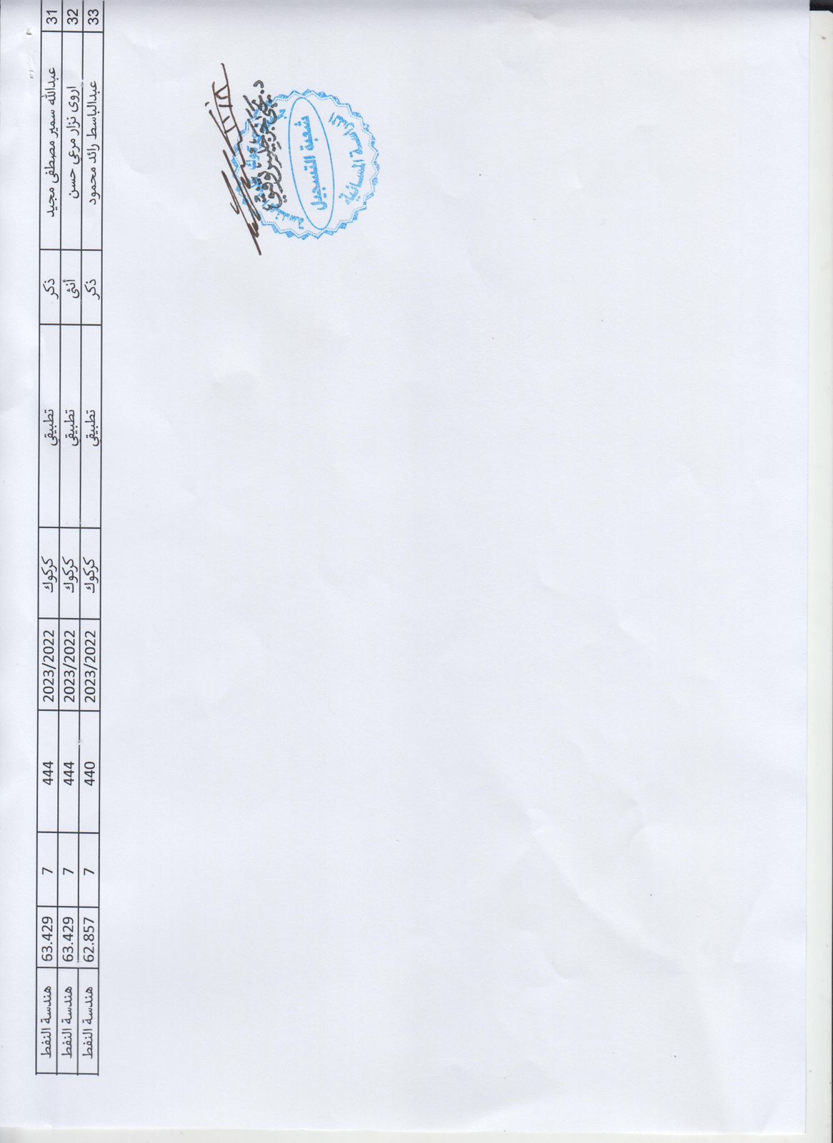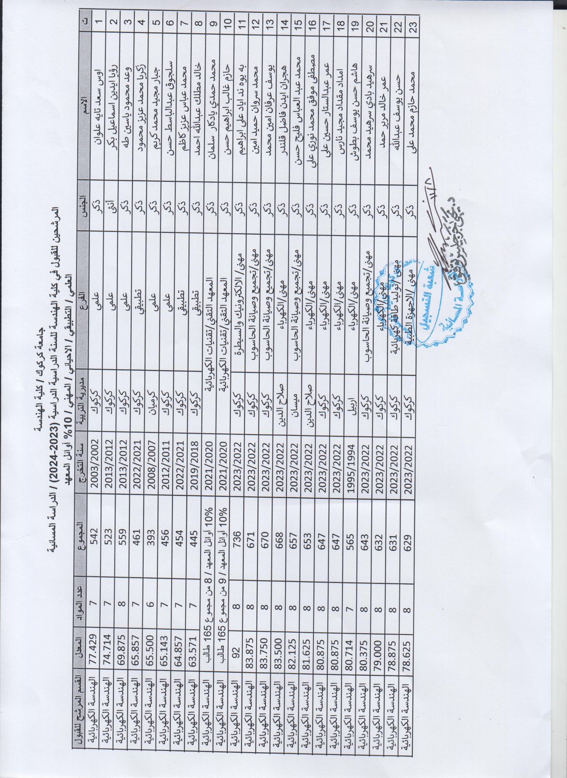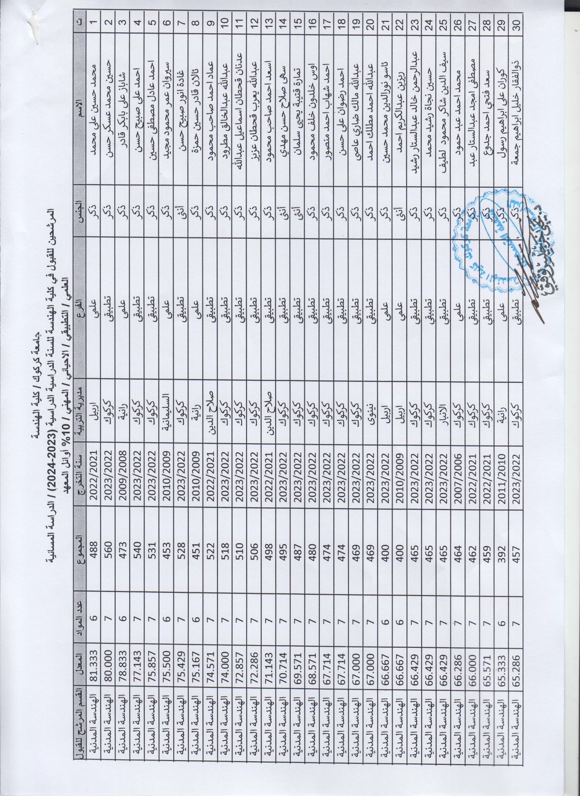 تعلن كلية الهندسة عن اسماء الطلبة المقبولين في الدراسة المسائية للسنة الدراسية ٢٠٢٣/٢٠٢٤