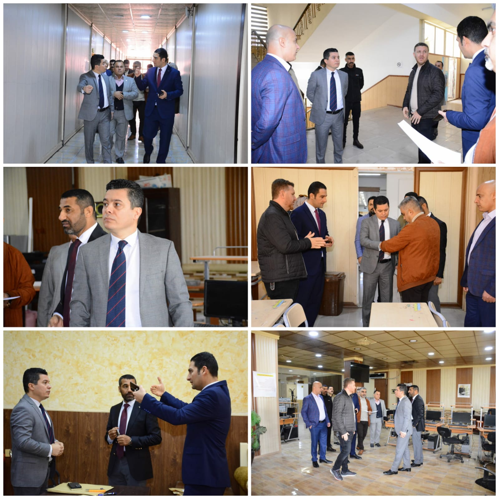 حيث تفقدت اللجنة القاعات الدراسية وبناية الكلية واللجنة الامتحانية لغرض الكشف عليها من أجل إكمال المستلزمات الفنية ومتطلبات اداء الامتحانات الخاصة بالقاعات الامتحانية ومدى توافر الشروط الامتحانية فيها حسب متطلبات وزارة التعليم العالي والبحث العلمي.