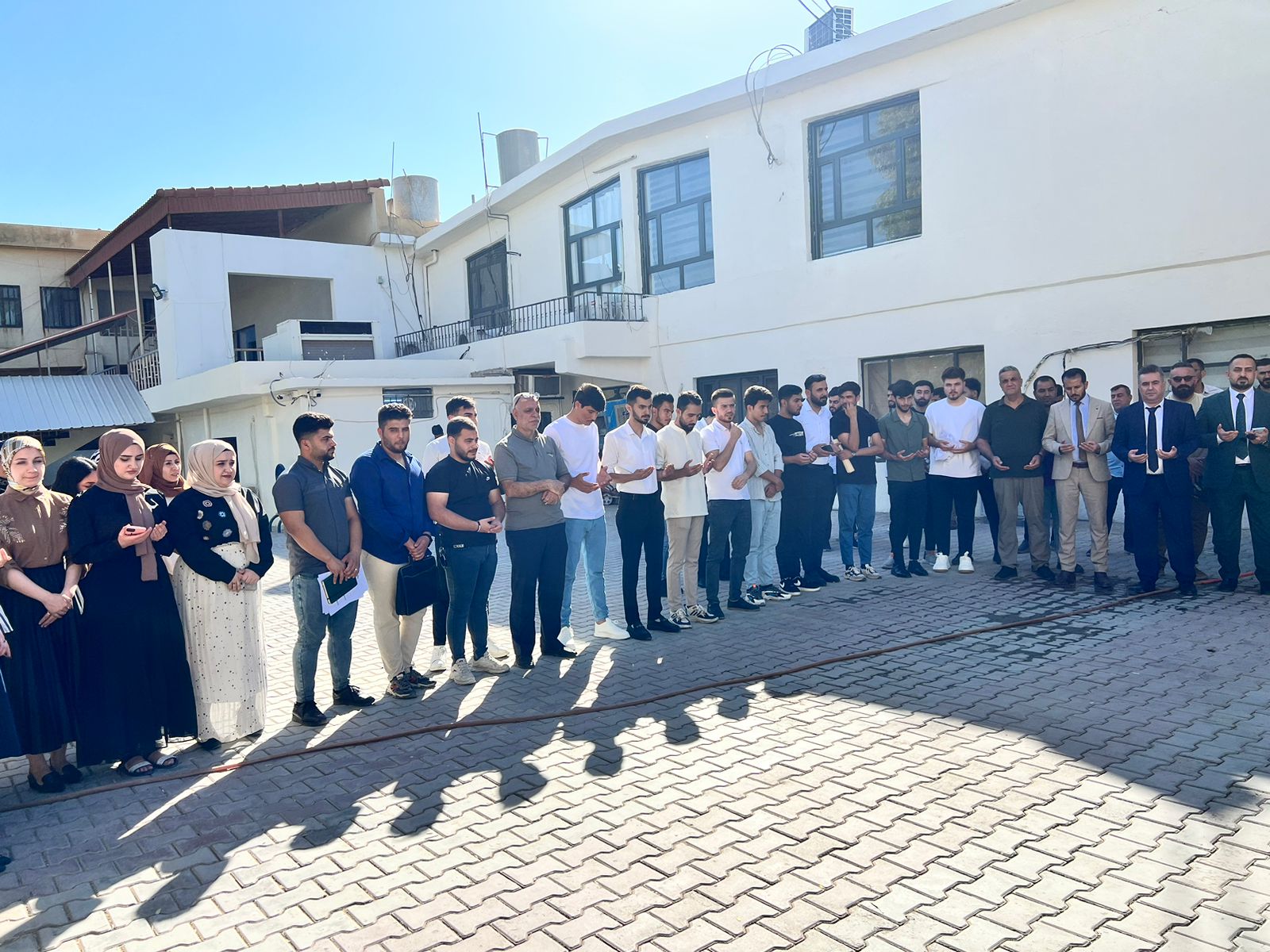 وشهدت الوقفة التأبينية التي حضرها السيد معاون العميد للشؤون العلمية والسيد معاون العميد للشؤون الادارية ورؤساء الفروع العلمية وعدد من التدريسيين والمنتسبين وجمع غفير من الطلبة , قراءة سورة الفاتحة على أرواح شهداء المقاومة، وتلاوة آيه من الذكر الحكيم , سائلين المولى عز وجل أن يتغمد الشهيد وشهداء المقاومة بواسع رحمته ويسكنهم فسيح جناته .