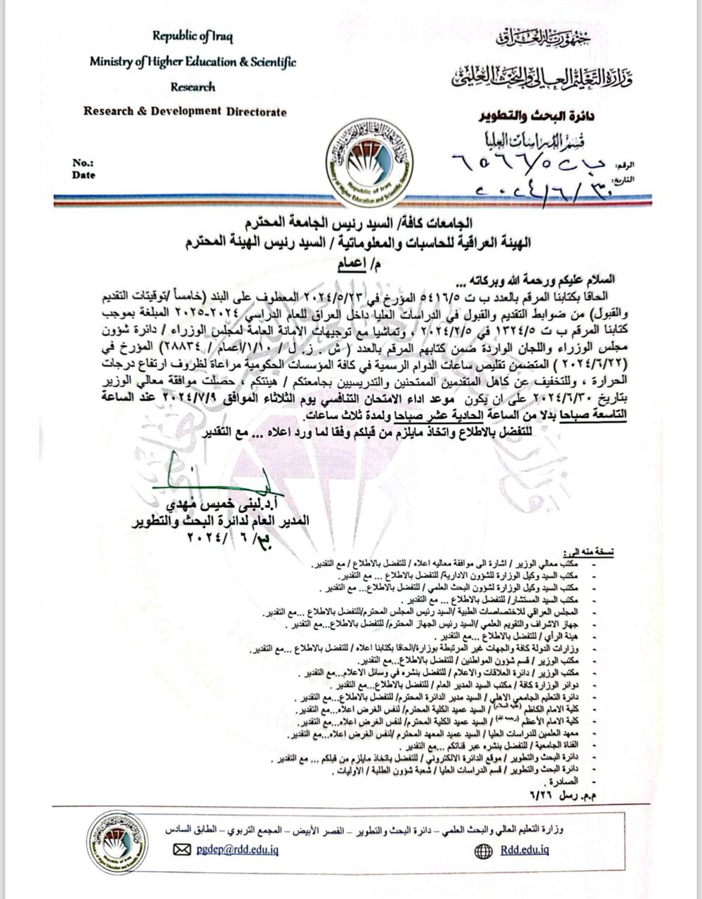 الى الطلبة المتقدمين للدراسات العليا في كلية العلوم / جامعة كركوك للعام الدراسي 2024-2025