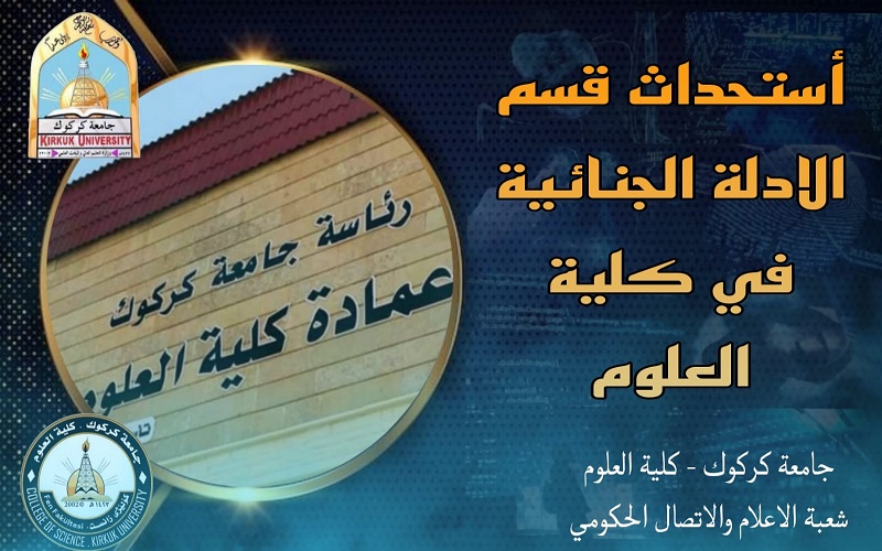 بتوجيه ومتابعة مستمرة من قبل السيد رئيس جامعة كركوك الاستاذ الدكتور عمران جمال حسن والسيد عميد كلية العلوم الاستاذ المساعد الدكتور نعمة علي احمد ، تسر كلية العلوم عن أستحداثها لقسم الادلة الجنائية للعام الدراسي 2023-2024 لرفد بلدنا بالخبرات وتخريج كوادر متخصصة للعمل في مجال التحري عن الجرائم والتحقيقات الجنائية وجمع الادلة والعمل معها وتحليلها بأسس علمية رصينة ورفد الطلبة بالمعارف على ايدي اساتذة مختصين ذو خبرة عالية . ويعتبر هذا القسم من الاقسام العلمية المهمة والتي تدرس في أغلب الجامعات العالمية وأكثرها رصانة وهو من التخصصات النادرة ، حيث سعت كلية العلوم على أستحداث هذا القسم لما له من اهمية فعلية في مواكبة التقدم العلمي في مجال البحث العلمي وتقديم الخدمة للقطاعين العام والخاص.