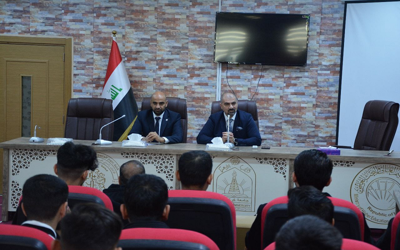 وبحضور رؤساء الأقسام القى جالاك محاضرة توجيهية اظهر فيها ترحيب الكلية بالطلبة الجدد موضحاً اهداف ورسالة الكلية وأهمية اختصاصات اقسامها في سوق العمل وما يكتسبه الخريج من الدراسة فيها، موضحاً ماهية الحياة الجامعية وما يتمتع به الطالب الجامعي واختلافها من المراحل الدراسية السابقة.