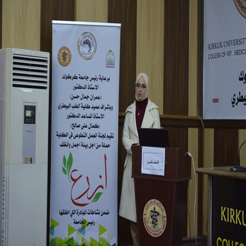 ضمن المبادره التي اطلقها رئيس جامعه كركوك الاستاذ الدكتور (عمران جمال حسن) ازرع وبإشراف عمادة كلية الطب البيطري اقامت الكليه ورشة عمل بعنوان من اجل جمال ونظافة بيئتك ازرع وبالتعاون مع وحده التشجير في الجامعه وبحضور عميد الكليه والهيئة التدريسية والمنتسبين وتضمنت المحاضره التي القاها م .م هيام رشيد شهاب حول التلوث البيولوجي للبيئه والتي تشمل التلوث بشكل عام والتي تؤثر على حياة النبات والحيوان الانسان والمحاضره الثانيه من قبل مسؤول وحدة التشجير في الجامعه م .م محمد ممتاز ابراهيم تطرق فيها حول تشجير المدن ومنها الجامعات والكليات ولما لها من اهميه في المحافظه على جماليه ونقاء البيئه.